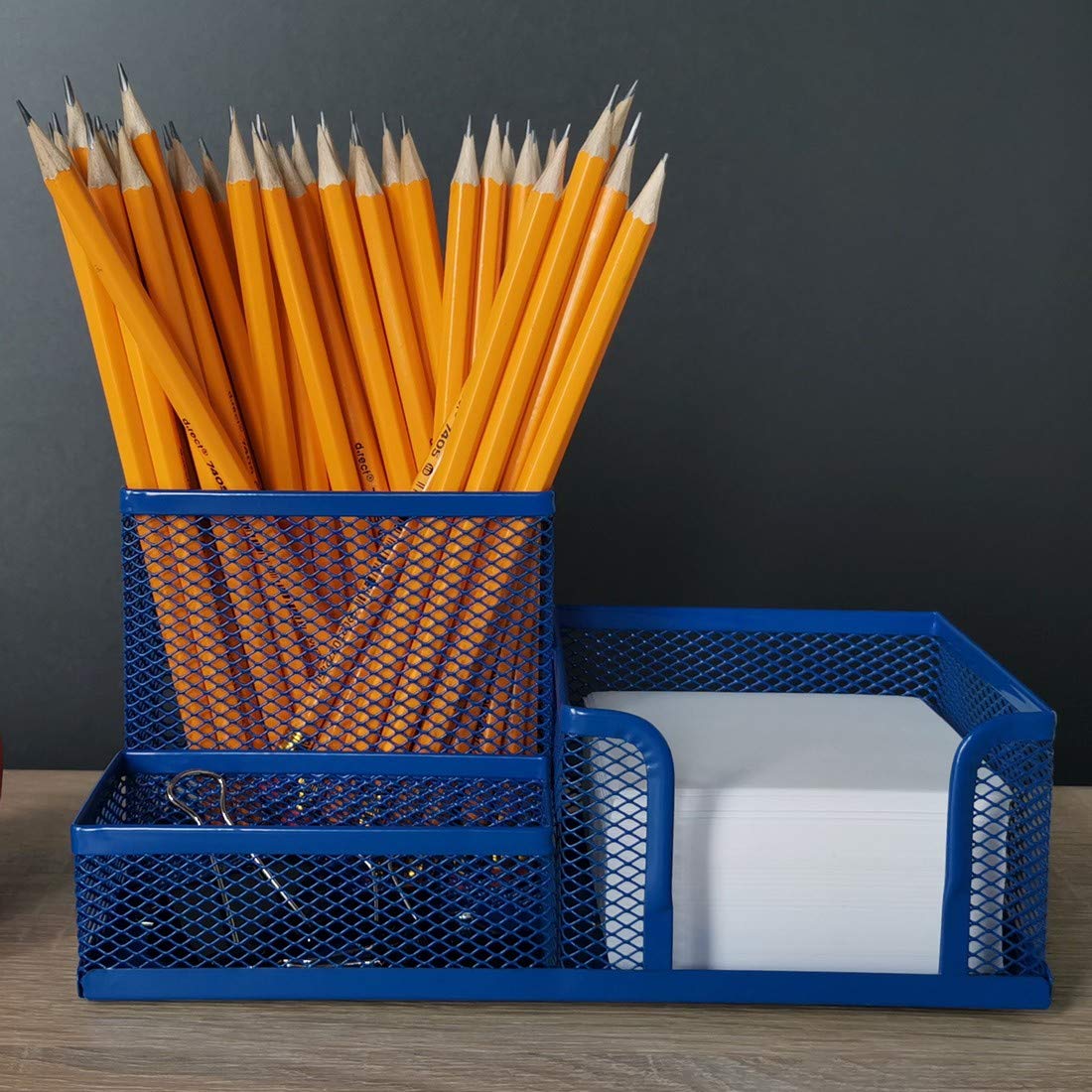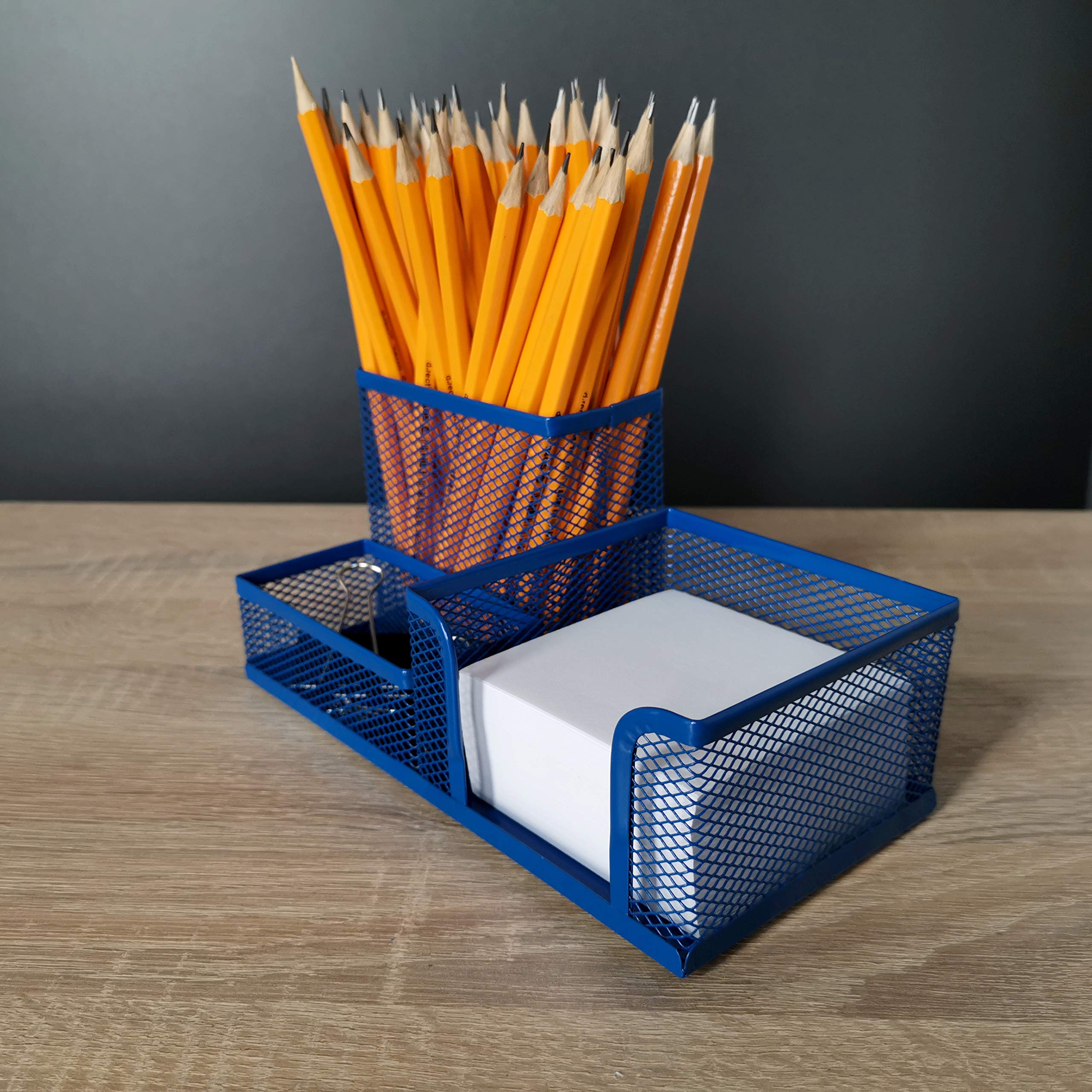 Leviatan Schreibtisch Organizer | Desk Organizer aus Metall | Stifthalter für Büro | Tischorganizer mit Zettelhalter Mesh | 205 x 103 x 98 mm Marineblau