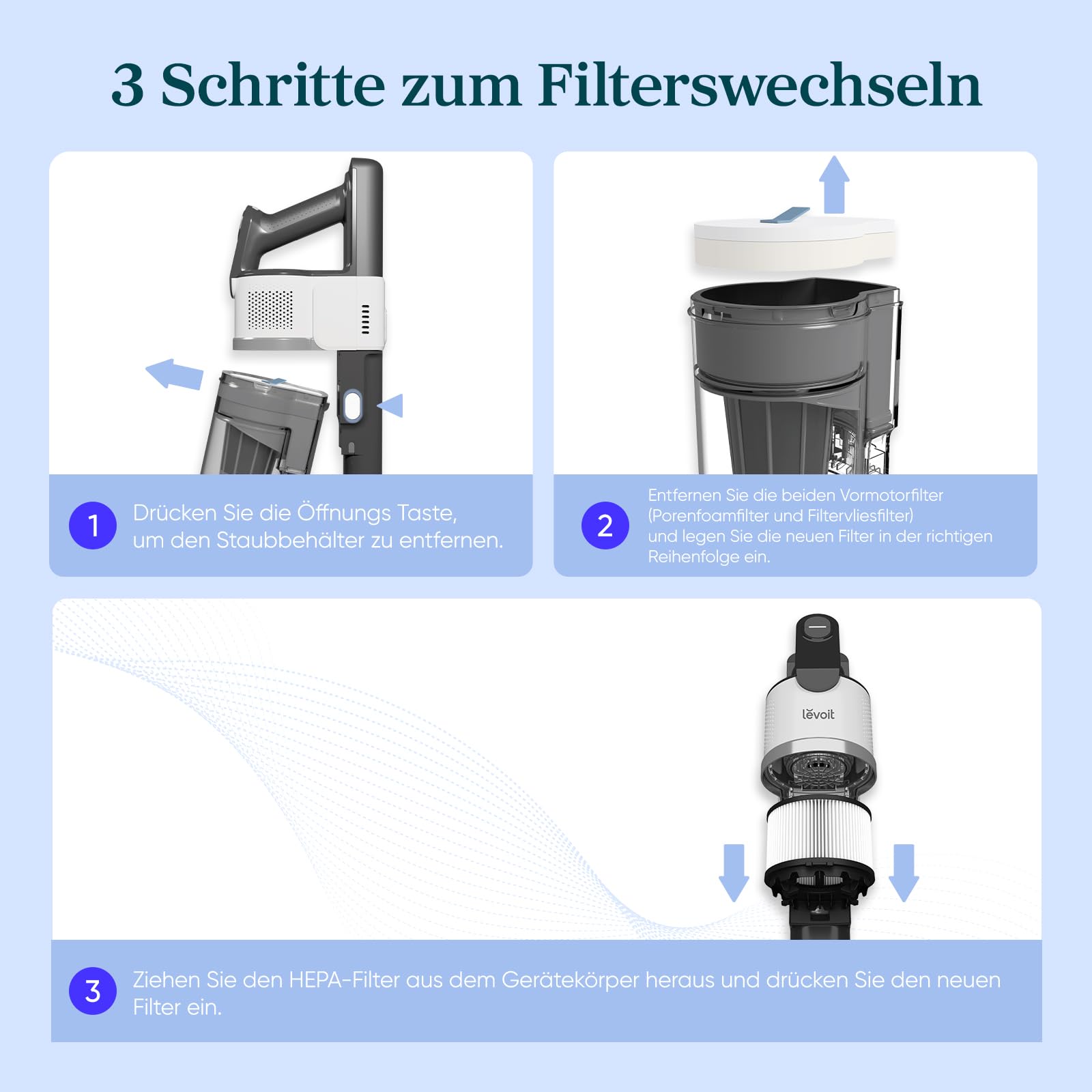 Levoit Originaler 2 Pack Ersatz-HEPA-Filter für AERO Akku Staubsauger, 99,999 Prozent HEPA-Effizienz für Allergiker Tierbesitzer, Filterleistung für 4 Vormotorefilter und 2 Nachmotorefilter