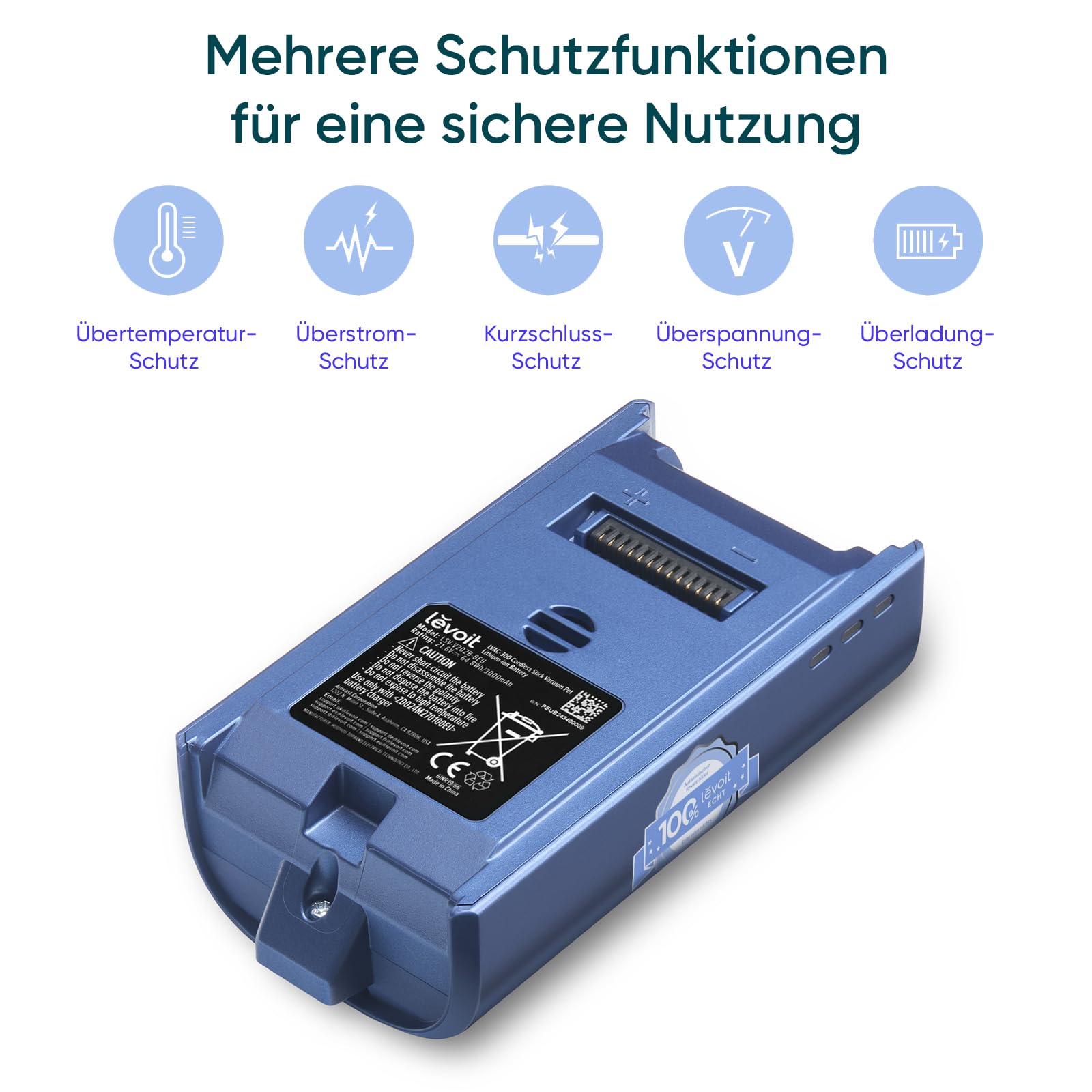 Levoit Originaler Ersatzbatterie für LVAC 300 Akku Staubsauger, Laufzeit bis zu 60 Minuten, 3000mAh Lithium-Batterien, blau