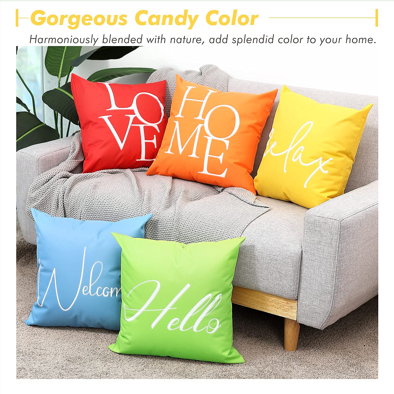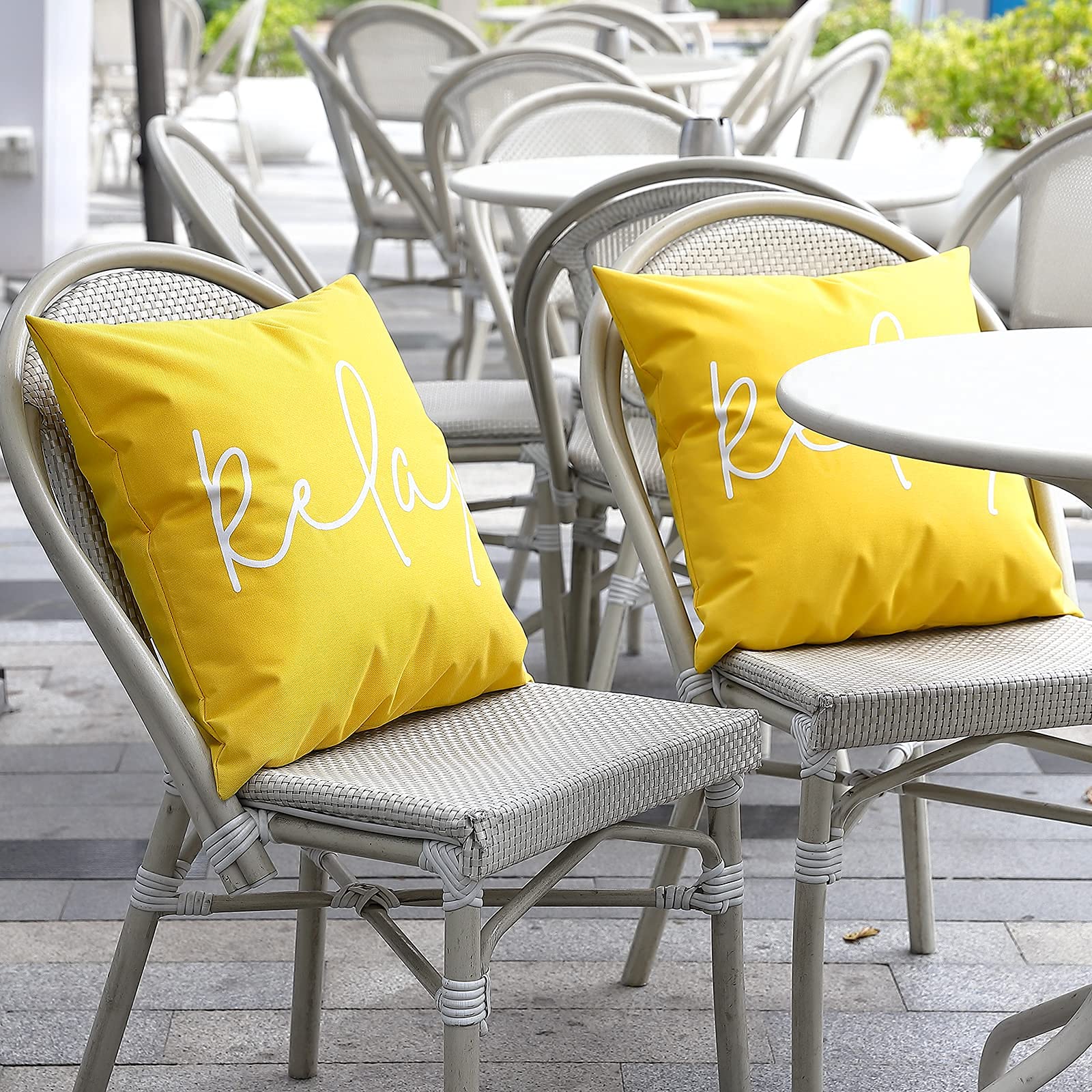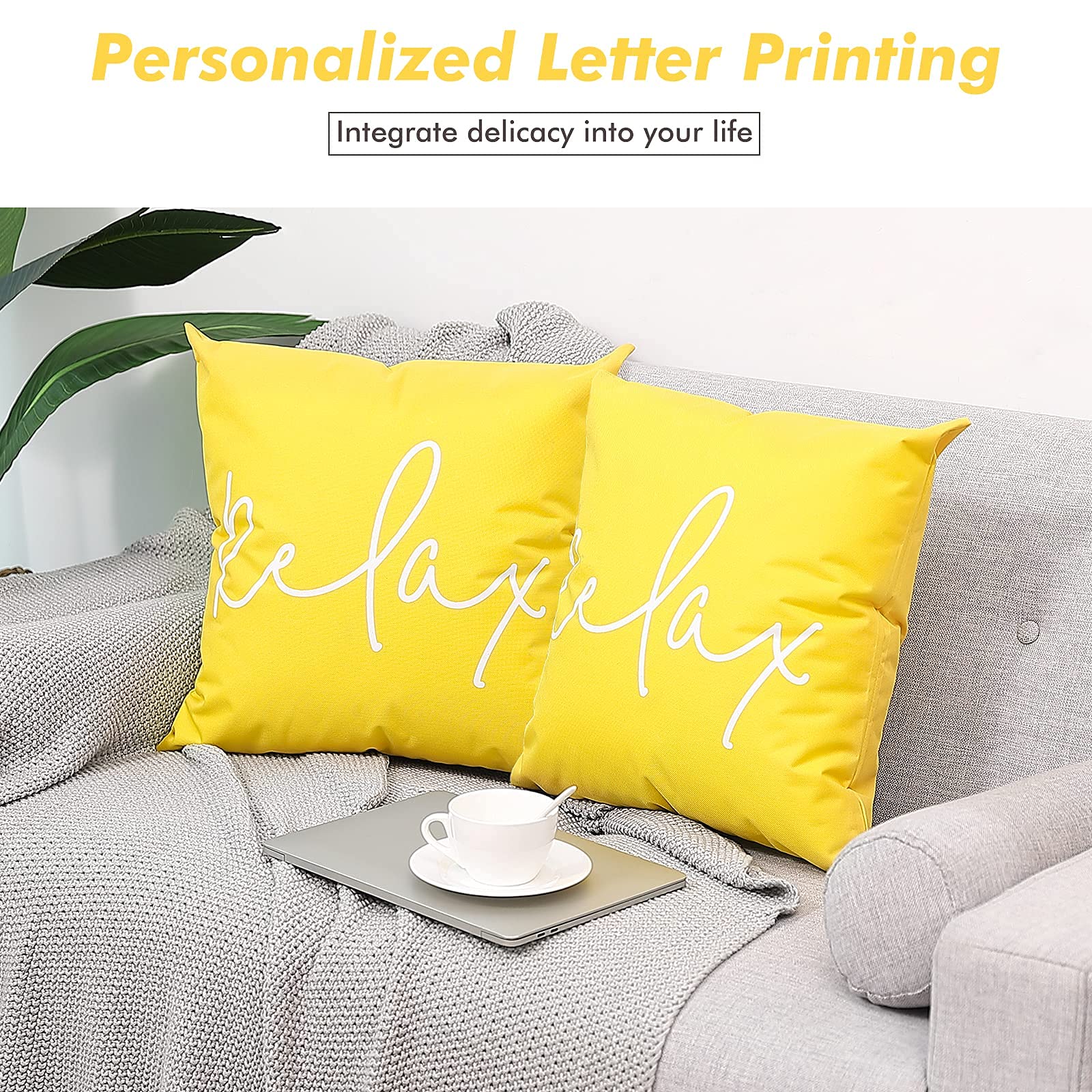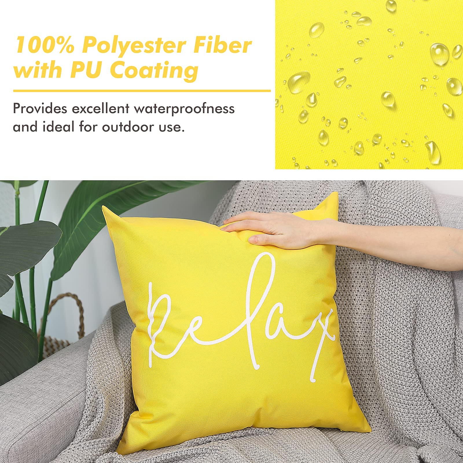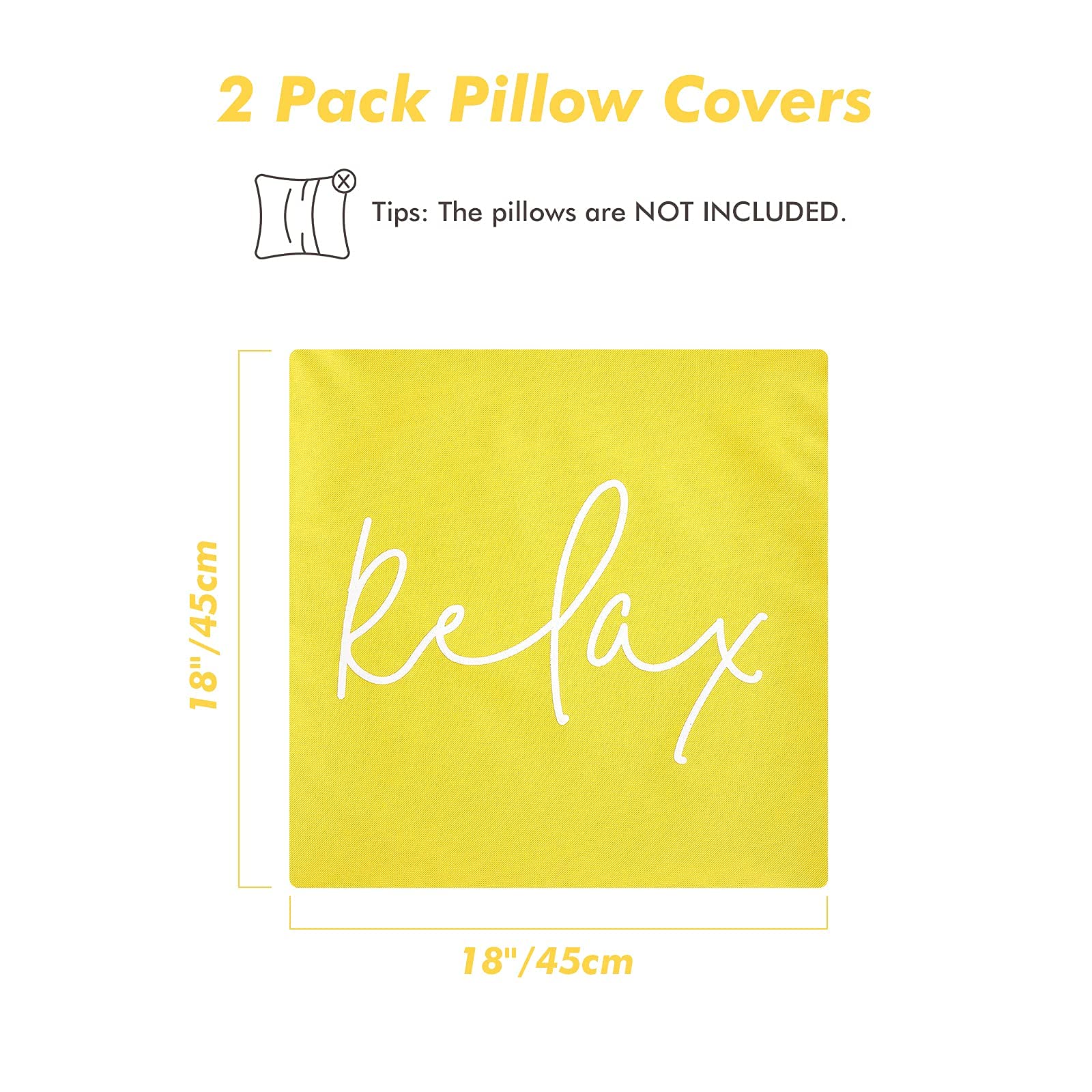 Lewondr Outdoor Kissenbezug, 2er Pack Wasserdicht Kissenhülle mit Relax Drucken, UV Schutz Polyester Zierkissenbezug mit PU Beschichtung für Sofa Stuhl Garten Lounge(45x45cm) - Gelb