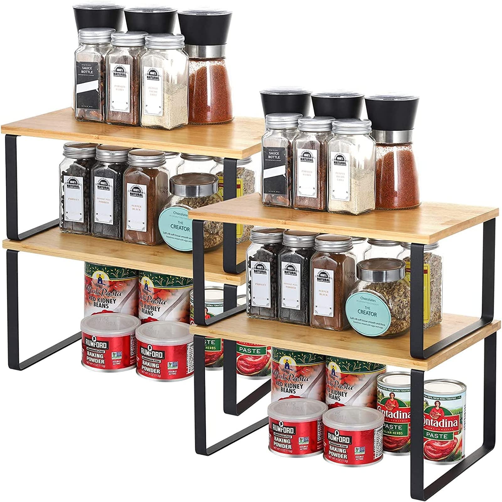 Stabil und robustStatische Tragfähigkeit jedes Regals: 33 lb (15 kg), bietet genügend Stauraum, um die Nutzung von Schränken und Arbeitsplatten zu maximieren, bequem zu organisieren Tassen, Gewürzflaschen, Teller, Geschirr.