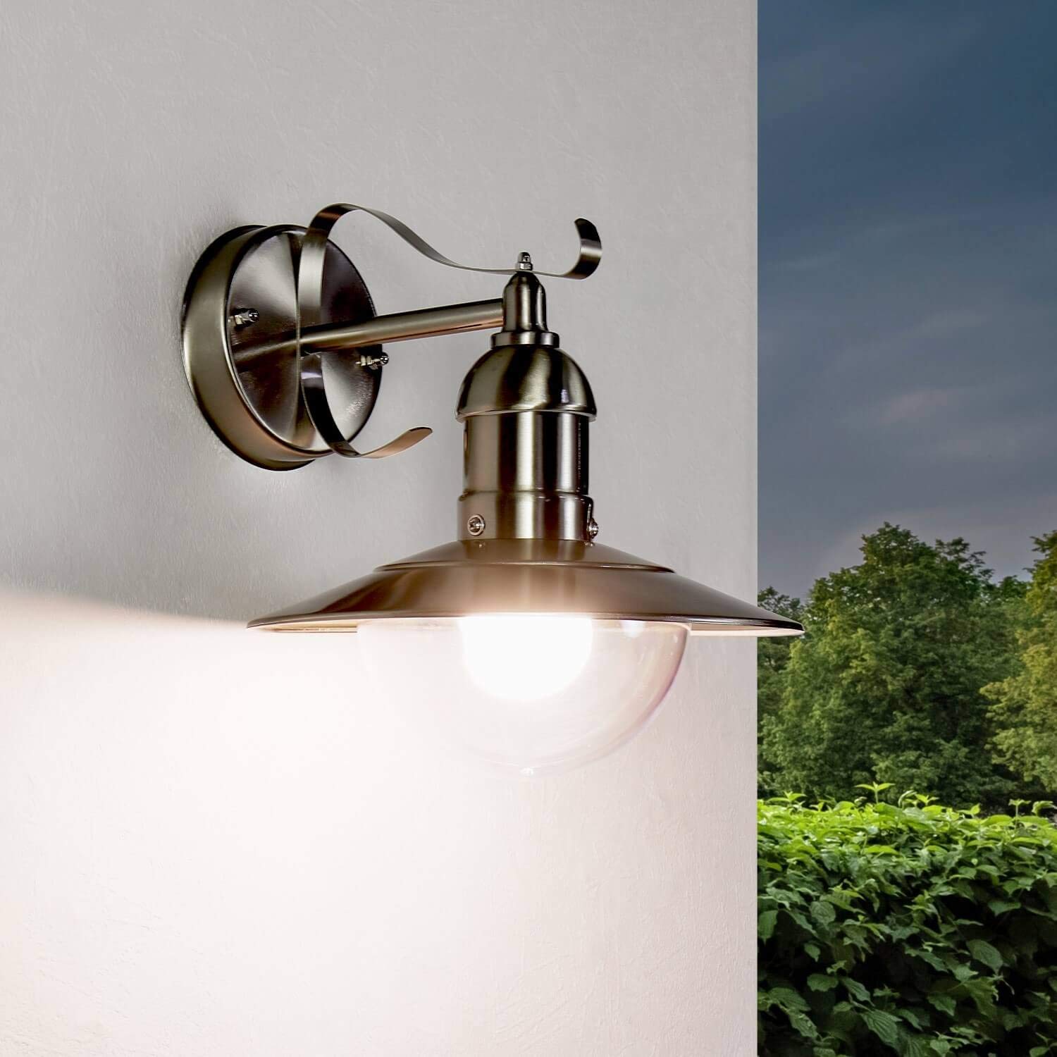 Die maritime Aussenwandlampe OSLO überzeugt durch ihre schicke Laternenform, welche an eine alte Hafenlaterne erinnert. Das wetterfeste Edelstahl sowie der robuste Glasschirm machen die Wandleuchte zu einer witterungsbeständigen Lichtquelle in Ihrem Aussenbereich. Egal ob Eingangsbereich, Hof, Balkon oder Terrasse - Verleihen Sie ihrem Grundstück mit OSLO ein besonders nostalgisches Ambiente!