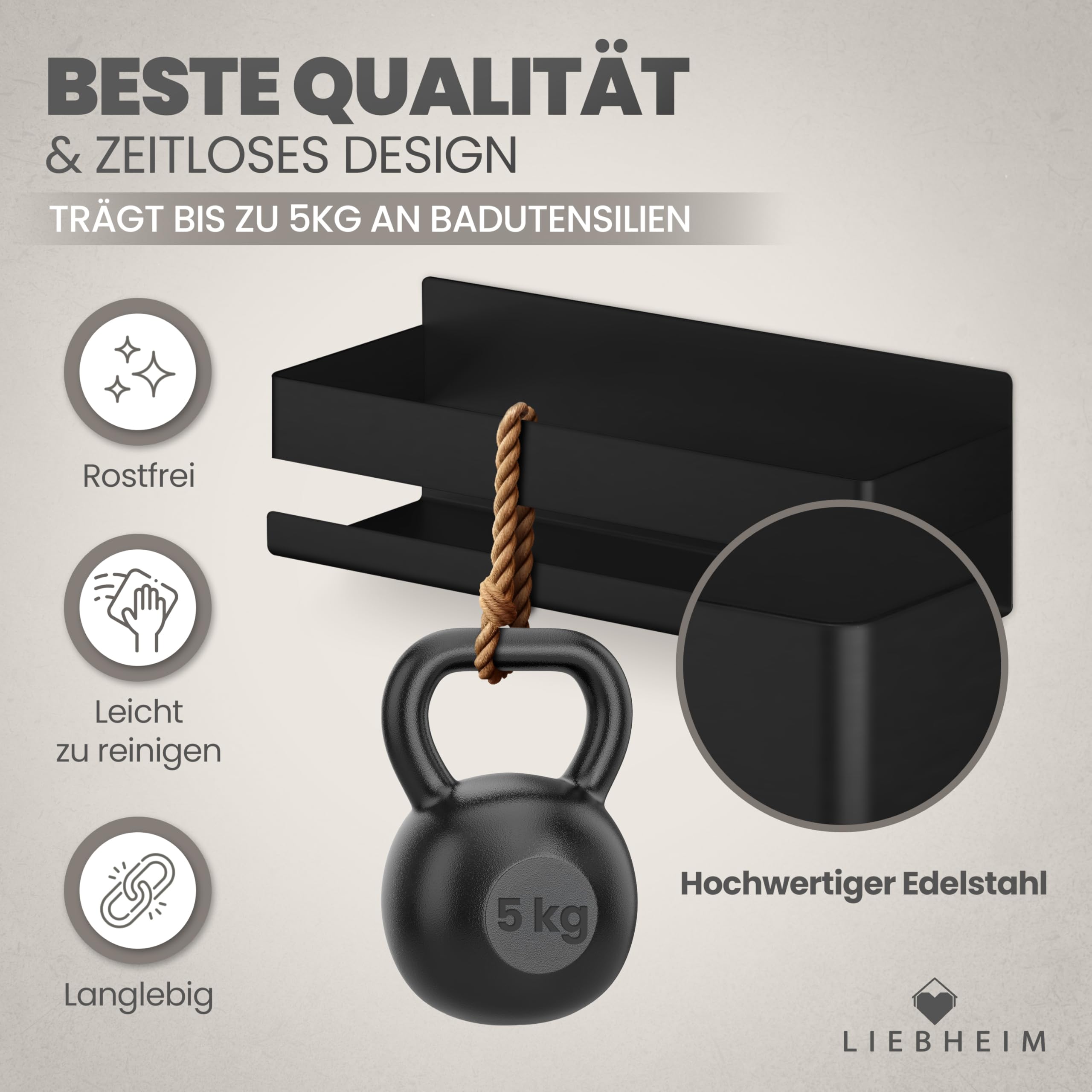 • ✔️ ???????????????????????????????????????? ????????????????????????: Die Duschablage schwarz fügt sich nahtlos in jede Badezimmereinrichtung ein. Sie sorgt für eine moderne und elegante Atmosphäre. Perfekt für die Aufbewahrung von Duschgel und Shampoo.