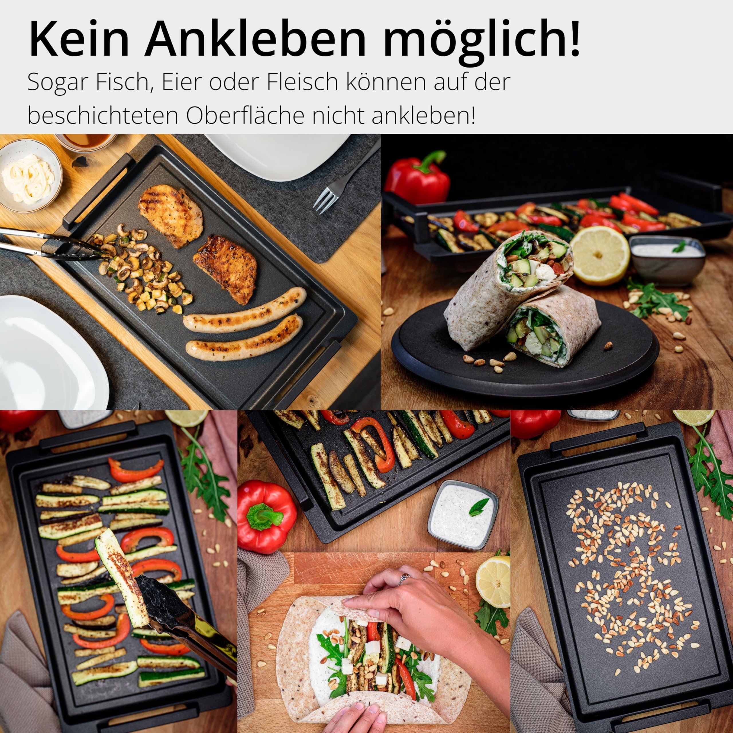 Robustes aluminium - von hand gegossen - in deutschland gemacht, vorteil - der teppanyaki ist völlig spannungsfrei - ist daher nicht möglich. Der teppanyaki eignet sich für den ofen oder alle anderen arten von kochern wie gas, elektro, keramik oder induktion. 8 9 mm dicke thermobasische basis, beste wärmeleitung - spart energie und hält die nahrung sehr lange warm, ebenfalls zum servieren geeignet. 4fache nicht -stick -überbeschichtung, verbrennung oder stickfutter ist nicht mehr möglich, sehr leicht zu reinigen, nur ein wenig warmes wasser und ein wenig flüssigkeit. Der begriff teppanyaki stammt aus japanisch, dahinter röstet und grillt fleisch, fisch und gemüse auf einem glatten grillteller. Teppich bedeutet buchstäblich so viel wie einen heissen teller. Teppanyaki bedeutet, dass grillgerichte teppanyaki -gerichte normalerweise sanft und fett sind. Leblingspan, teppanyaki mit seitengriffen, 41 x 24 cm, für alle arten von kochern und öfen.