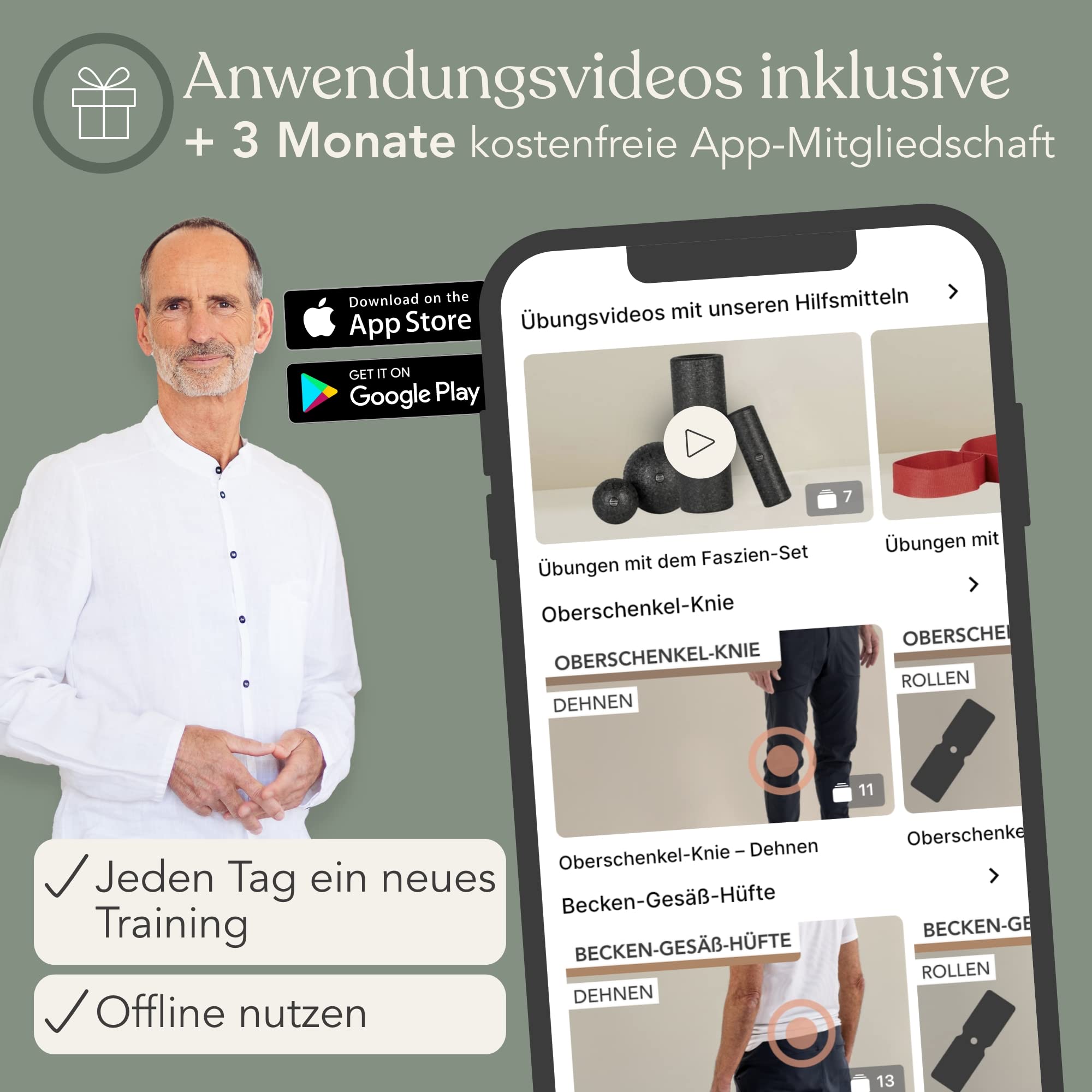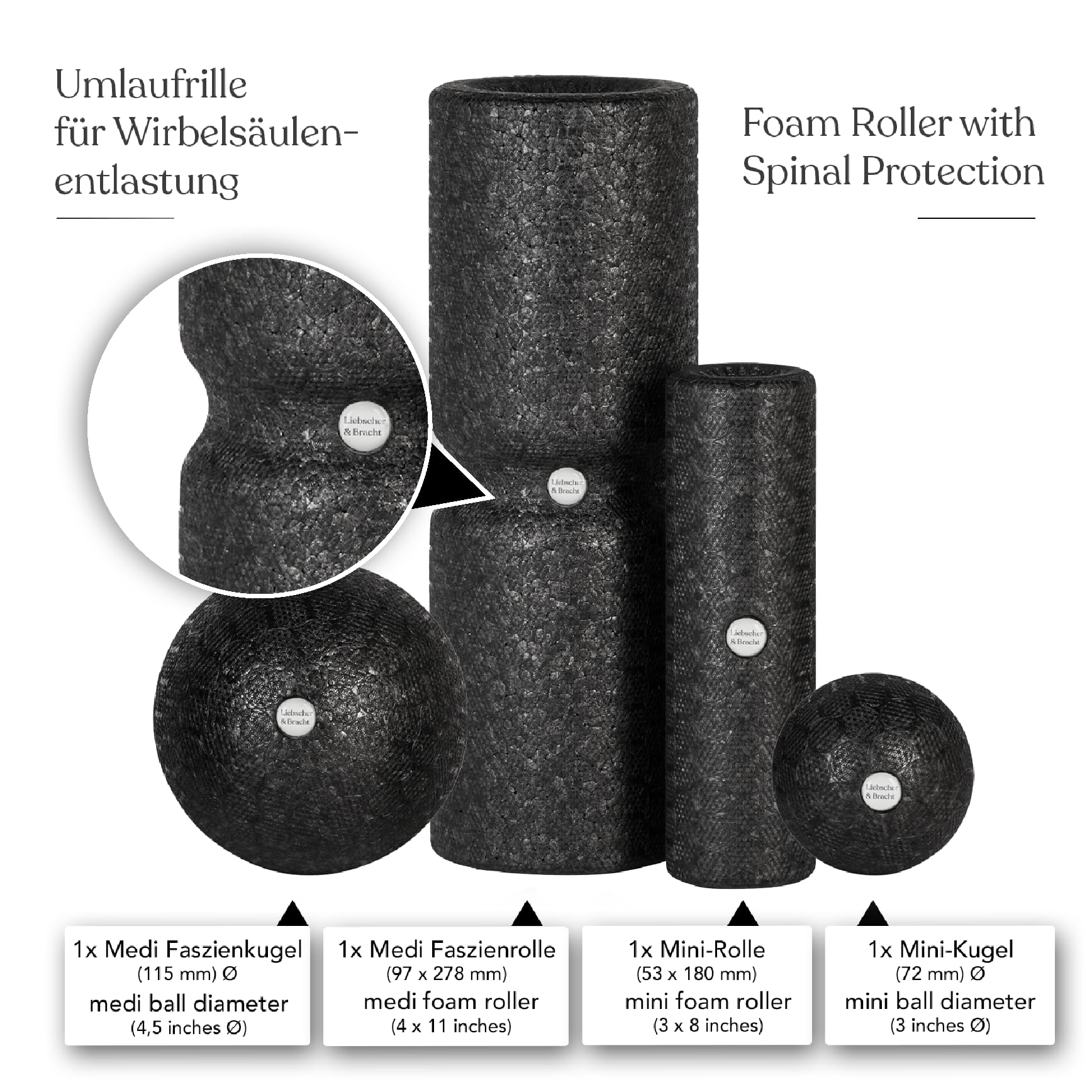 Liebscher & Bracht Original Faszien-Set: Faszienrolle und Faszienball (je 2 Stück) Faszienrollenset, Massageball & Rollen Made in Germany, Übungs-App