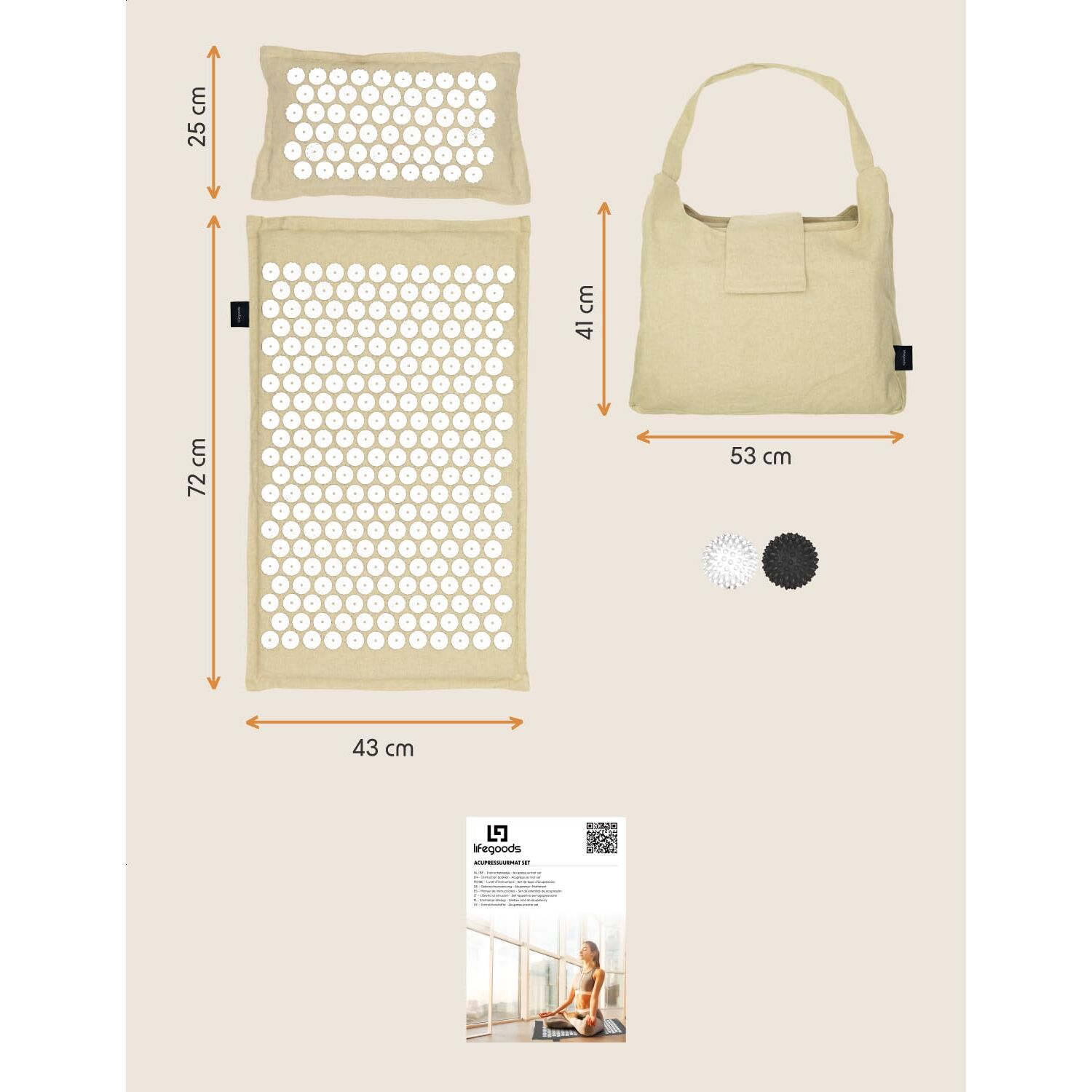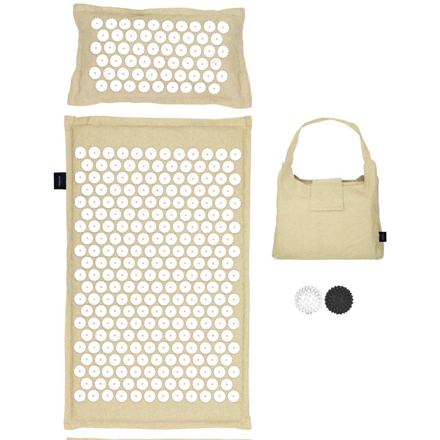 LifeGoods ECO Akupressurmatte Mit Kissen - Akkupressmatte - Akkupressurmatte+ - Akupressur Matte - Akupunktur Matte - Massagematte - Rücken - Stachelmatte - Fakirmatte - Nagelmatte - Acupressure Mat, Größe: L (ECO), Farbe: Beige