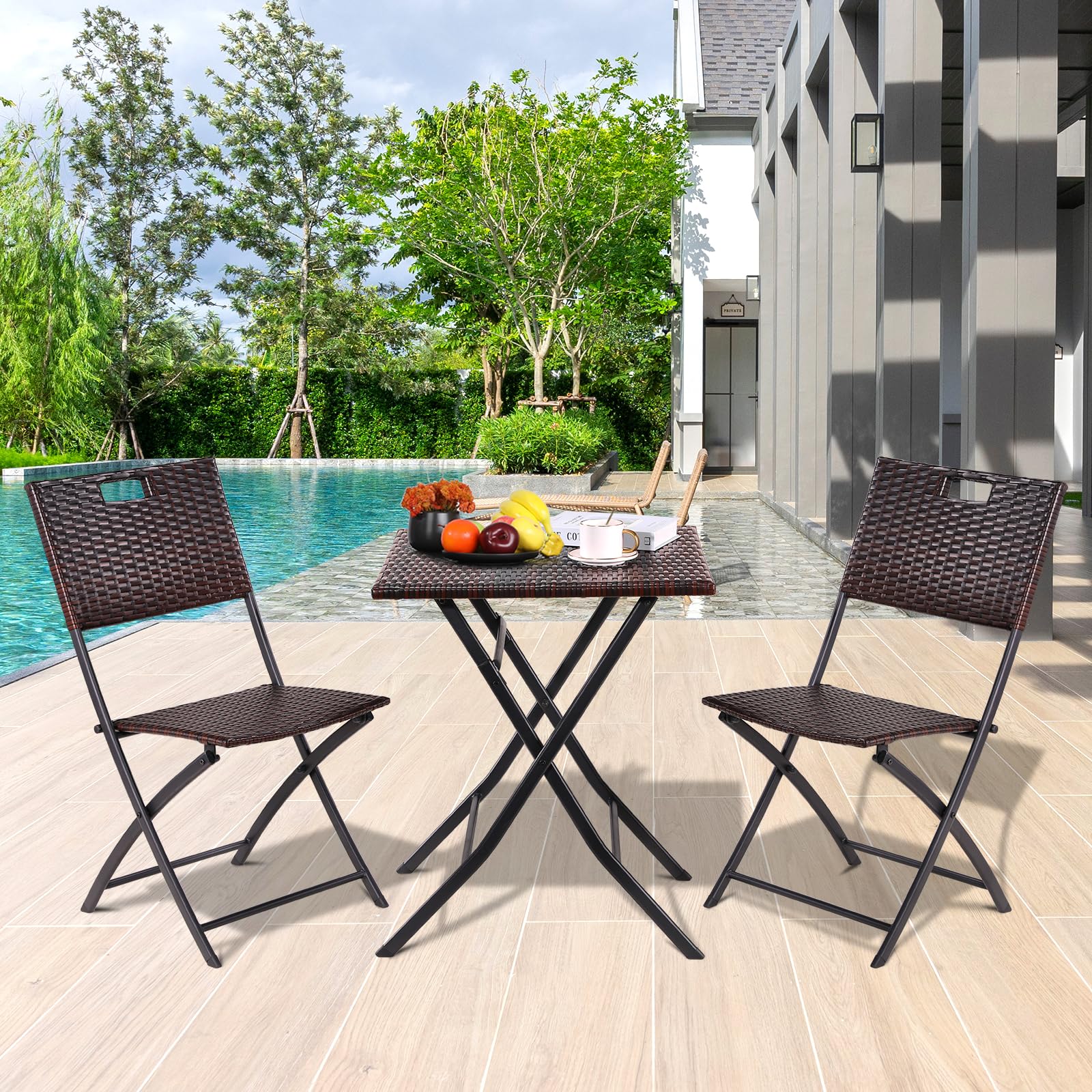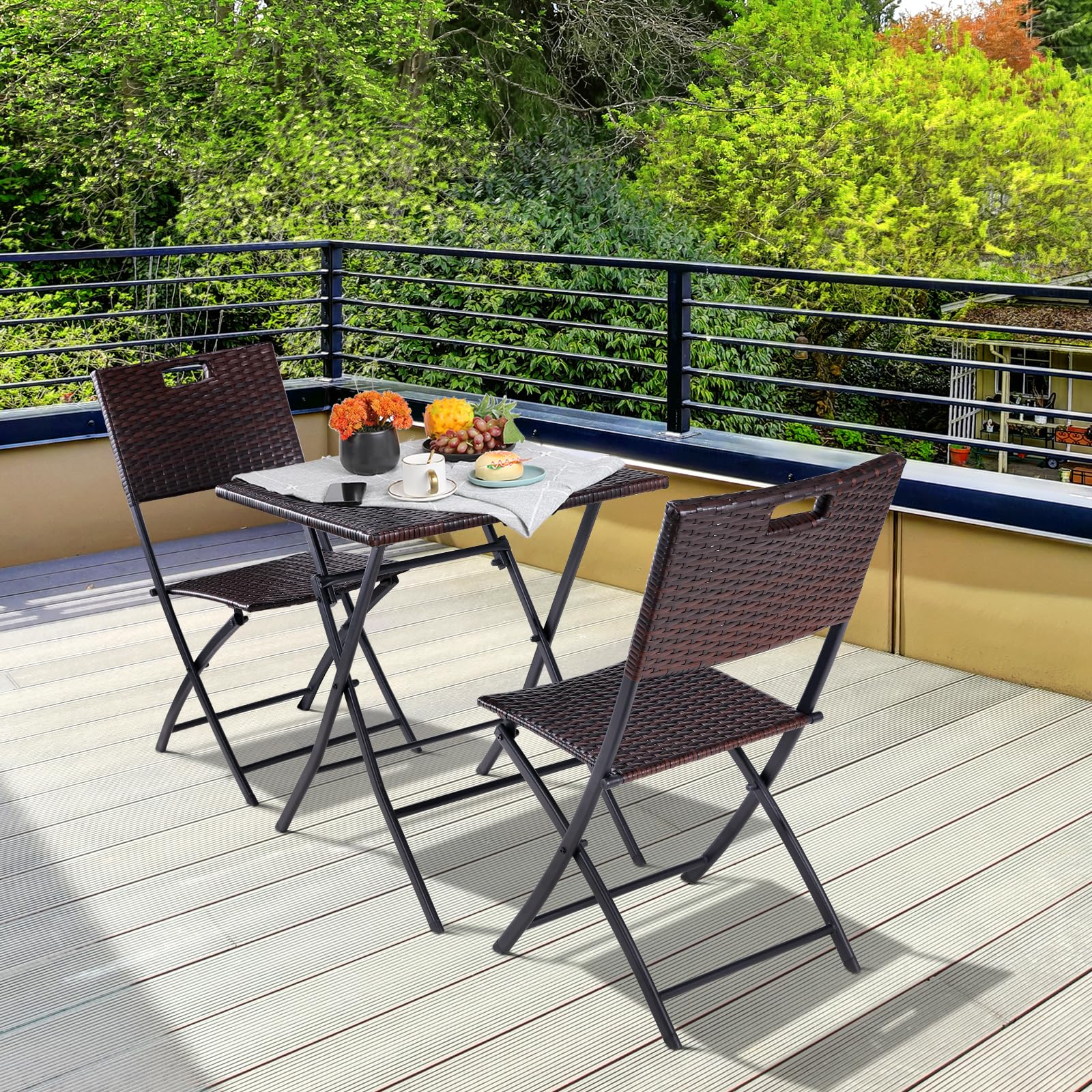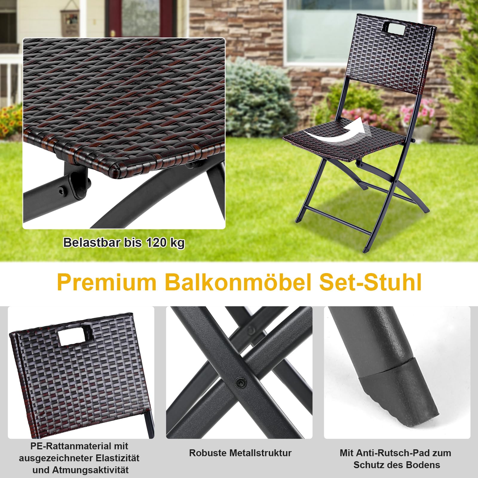 LIFERUN Balkonmöbel Set 3-teilige, Balkonmöbel Rattan, Bistro Gartenmöbel, 1 Klapptische und 2PCS Klappstühle, Braun Balkonmöbel Klappbar, Klappmöbel Stuhl für Balkon, Terrasse und Garten