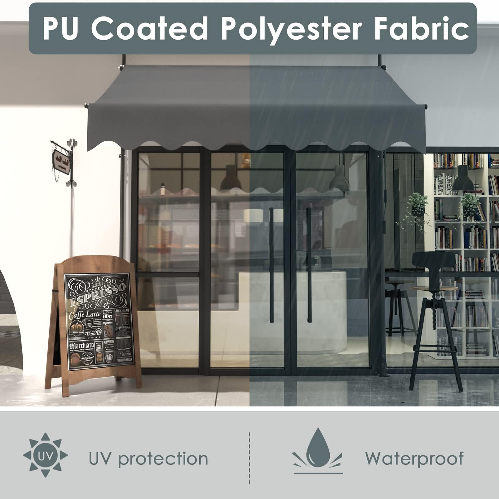 LIFERUN Klemmmarkise ohne Bohren | mit Handkurbel Balkon Balkonmarkise | Markise UV-beständig Wasserdicht Höhenverstellbar | Sonnenschutz für Balkon Terrasse Garten Terrassenüberdachung (Grau 200cm)