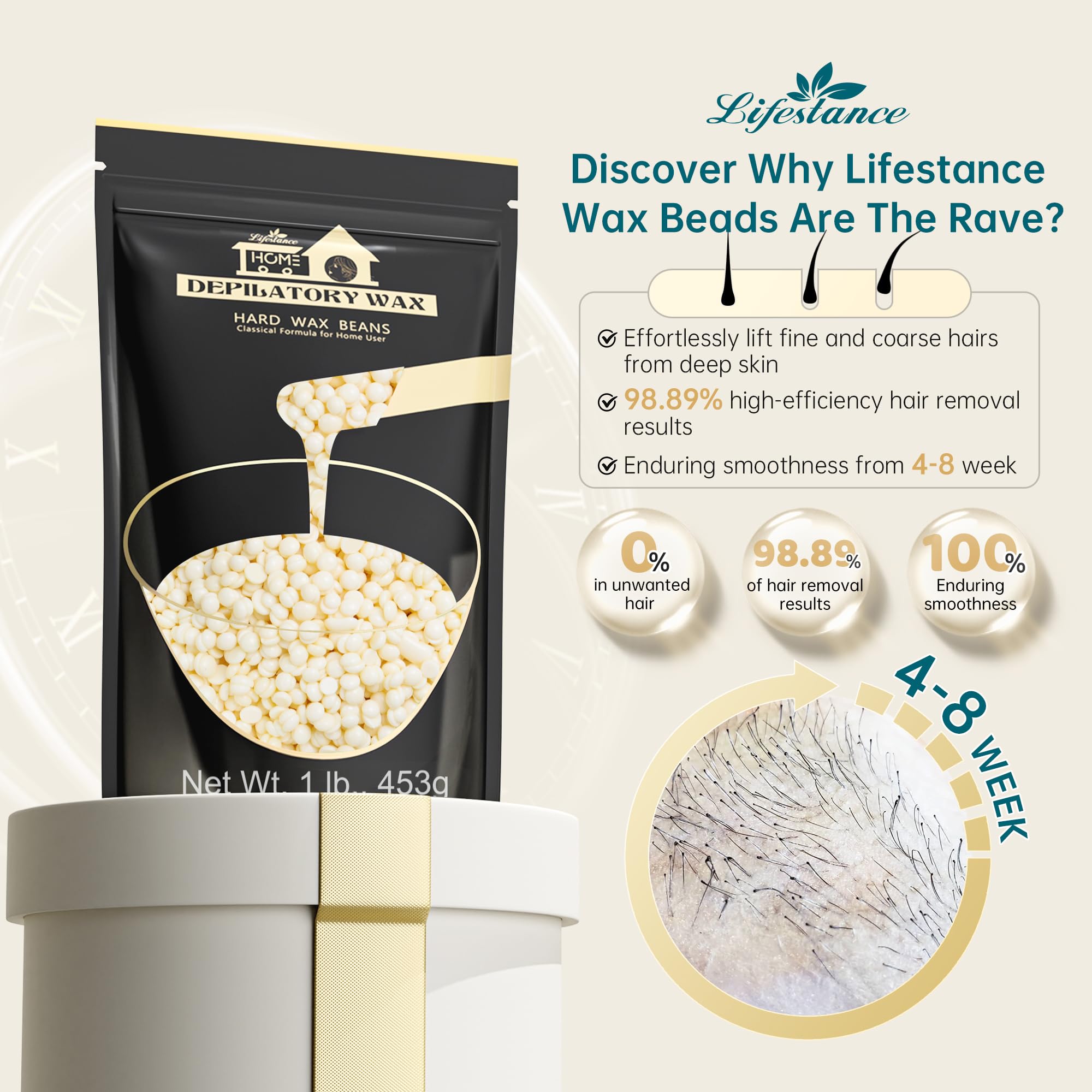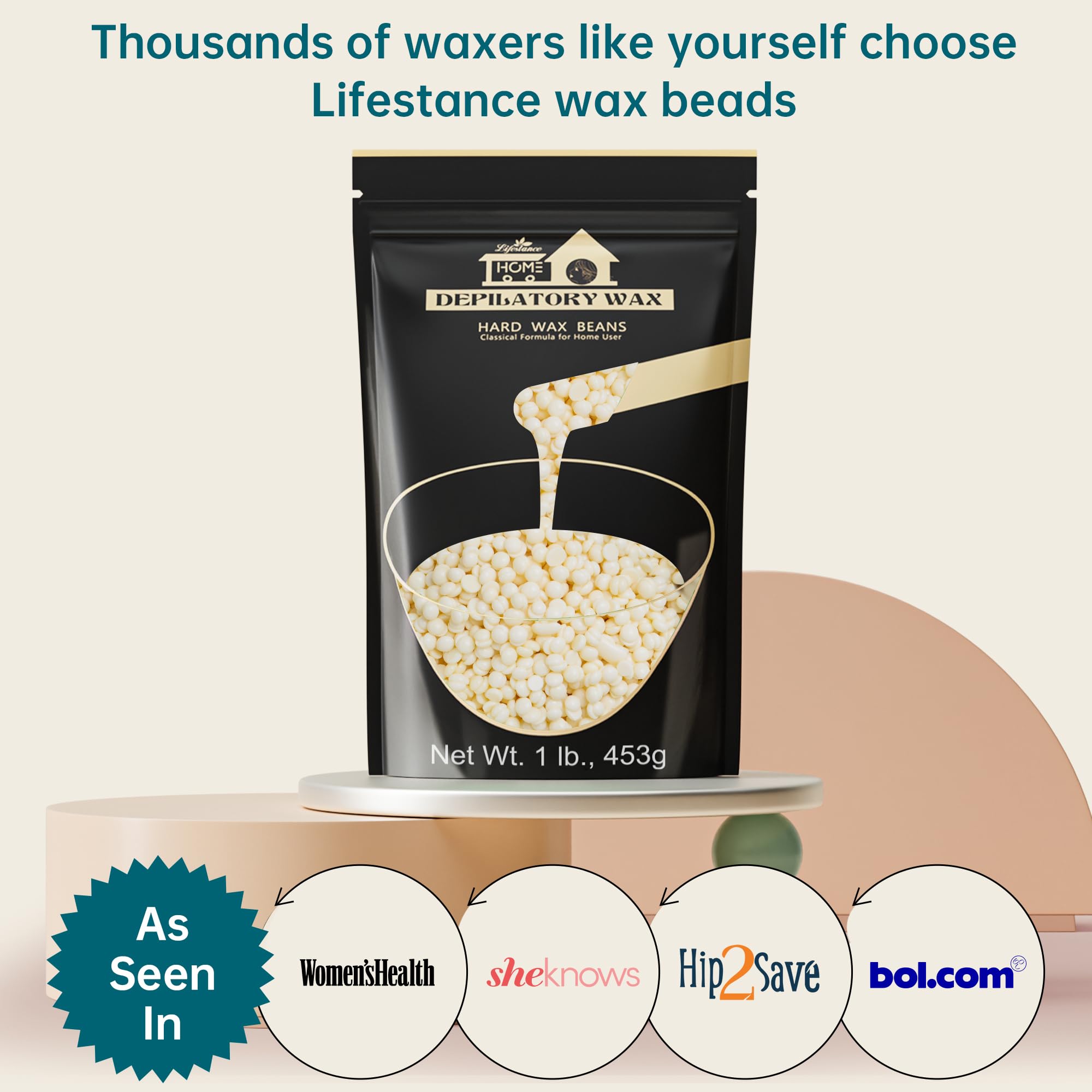 Lifestance 450g Waxing Perlen Formuliert für Anfänger, Wachsperlen mit 10 Holzspatel für Enthaarung, Creme Wachs Haarentfernung Perlen für für Bikini - bein - achselhöhle