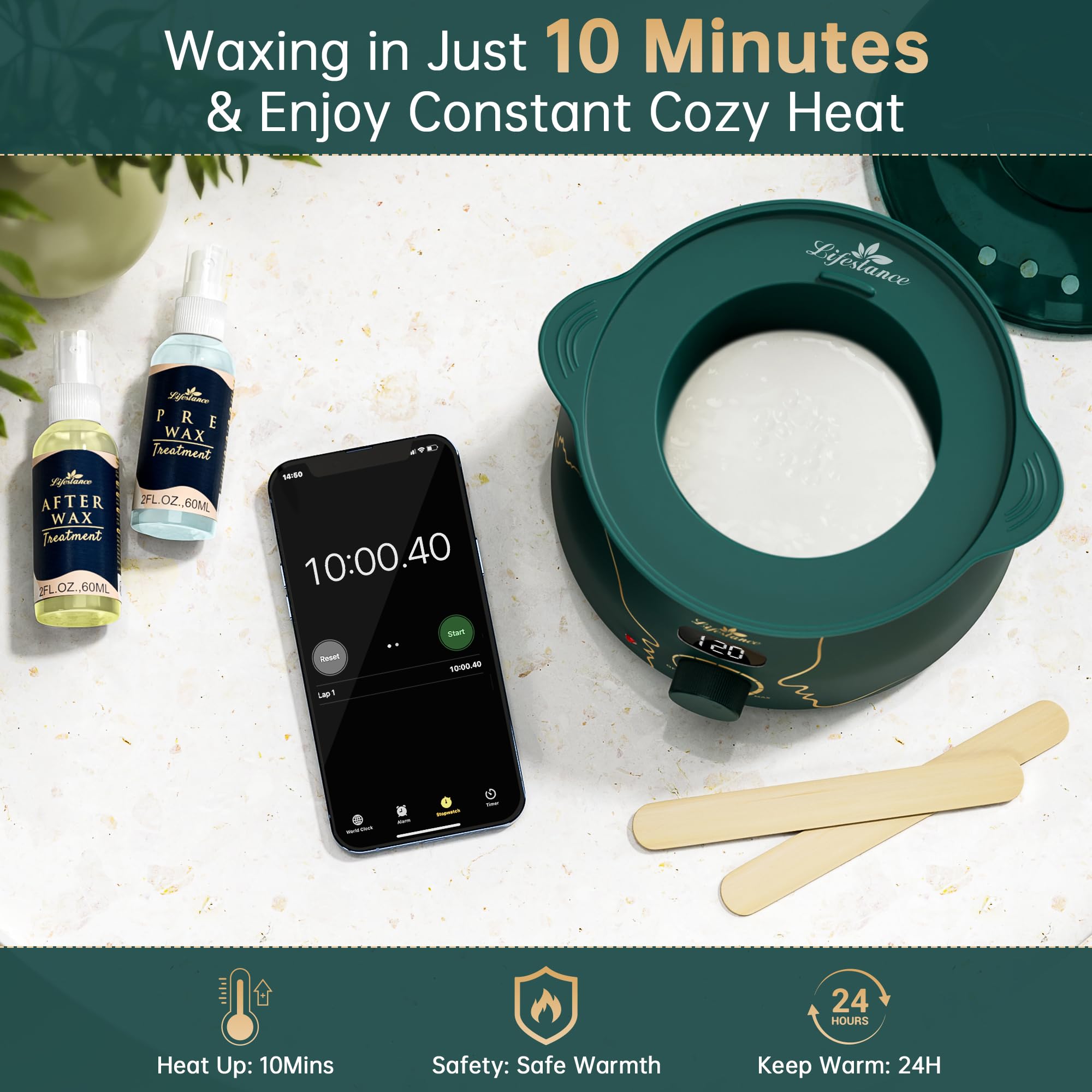 Lifestance Waxing Set - Smaragdlegierung L3 Wax Maschine zur Wachs Haarentfernung mit Grobes Haar und Hin Flaum, heisswachs haarentfernung für Bikini-Bereich, Augenbrauen, Achselhöhle, Gesicht, Beine
