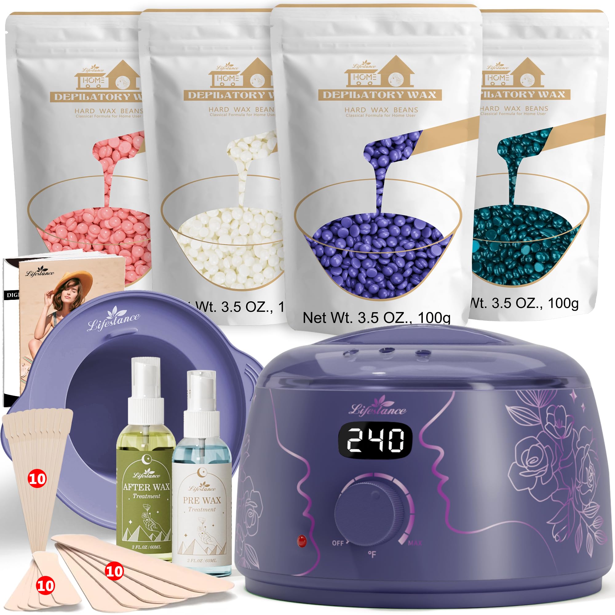 Lifestance Waxing Set - Amethystspur L3 Wax Maschine zur Wachs Haarentfernung mit Grobes Haar und Hin Flaum, heisswachs haarentfernung für Bikini-Bereich, Augenbrauen, Achselhöhle, Gesicht, Beine, Größe: 400 g (1er Pack), Farbe: Amethystspur