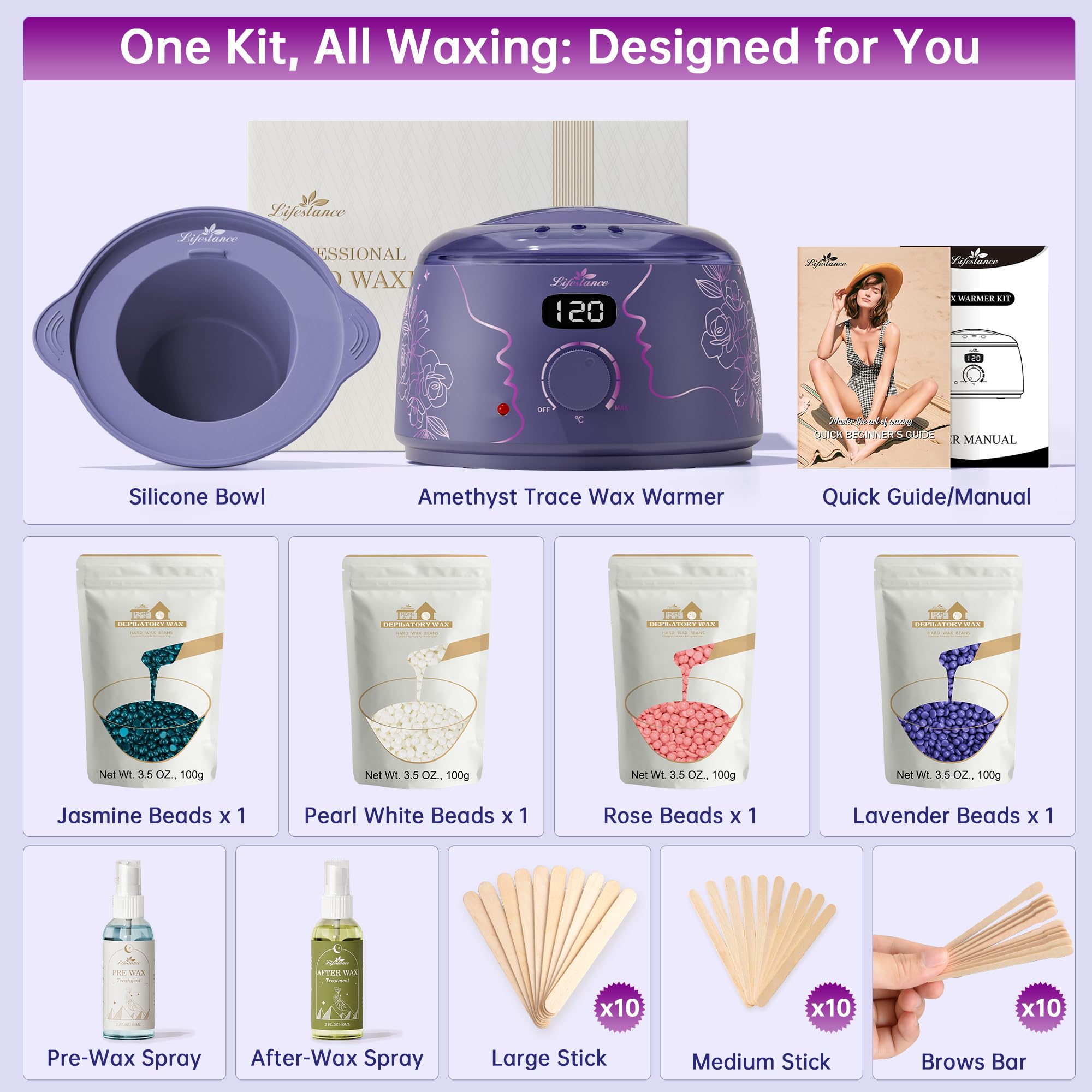 Lifestance Waxing Set - Amethystspur L3 Wax Maschine zur Wachs Haarentfernung mit Grobes Haar und Hin Flaum, heisswachs haarentfernung für Bikini-Bereich, Augenbrauen, Achselhöhle, Gesicht, Beine