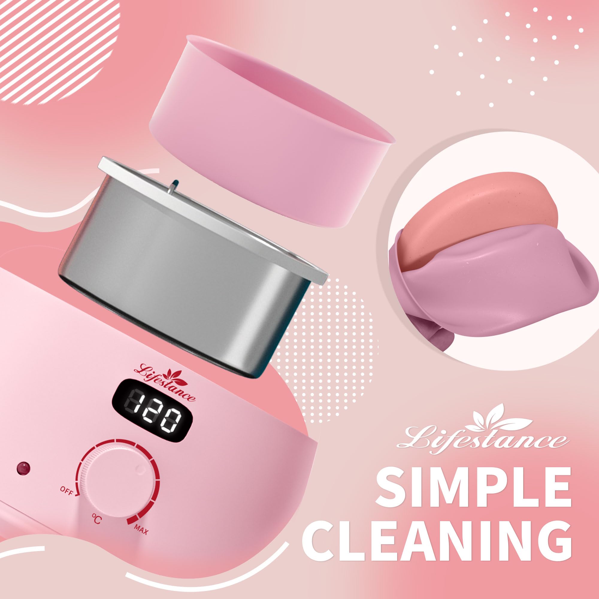 • [Neues Upgrade LCD Digitalanzeige Wachswärmer] - Lifestance waxing set bietet eine präzise Temperaturregelung, die schnell und gleichmässig für Schmelzwachs Hartwachs, Wachsbohnen, Einstellbare Temperaturregler von 60 ° C bis 120 ° C und maximieren Ihren Komfort. Es enthält auch eine passende Oberseite zum Deckeln des Wachswärmers und einen herausnehmbaren Aluminiumtopf, silikonschale, um die Integrität des Wachses zu erhalten.