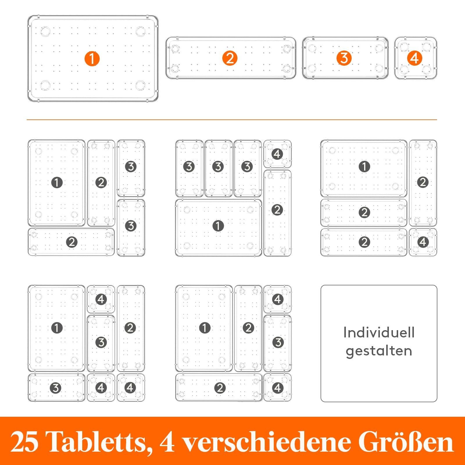 Lifewit 25 Stücke Schubladen Organizer mit 4 Grössen, Schminktisch Ordnungssystem, Klar Kunststoff Makeup/Badezimmer/Drawer Box, Schreibtisch Tabletts für Küchen, Schmuck, Schlafzimmer, Büro