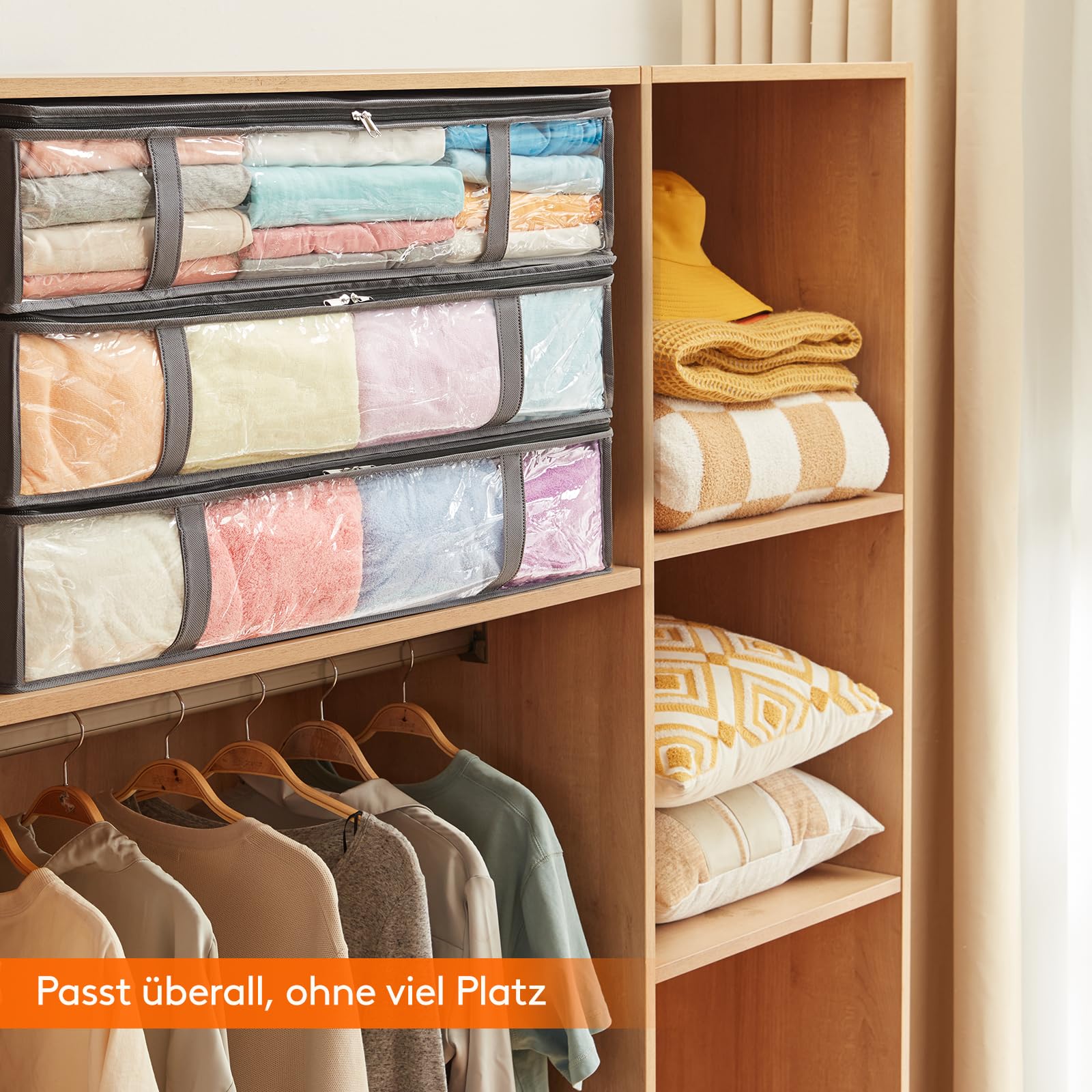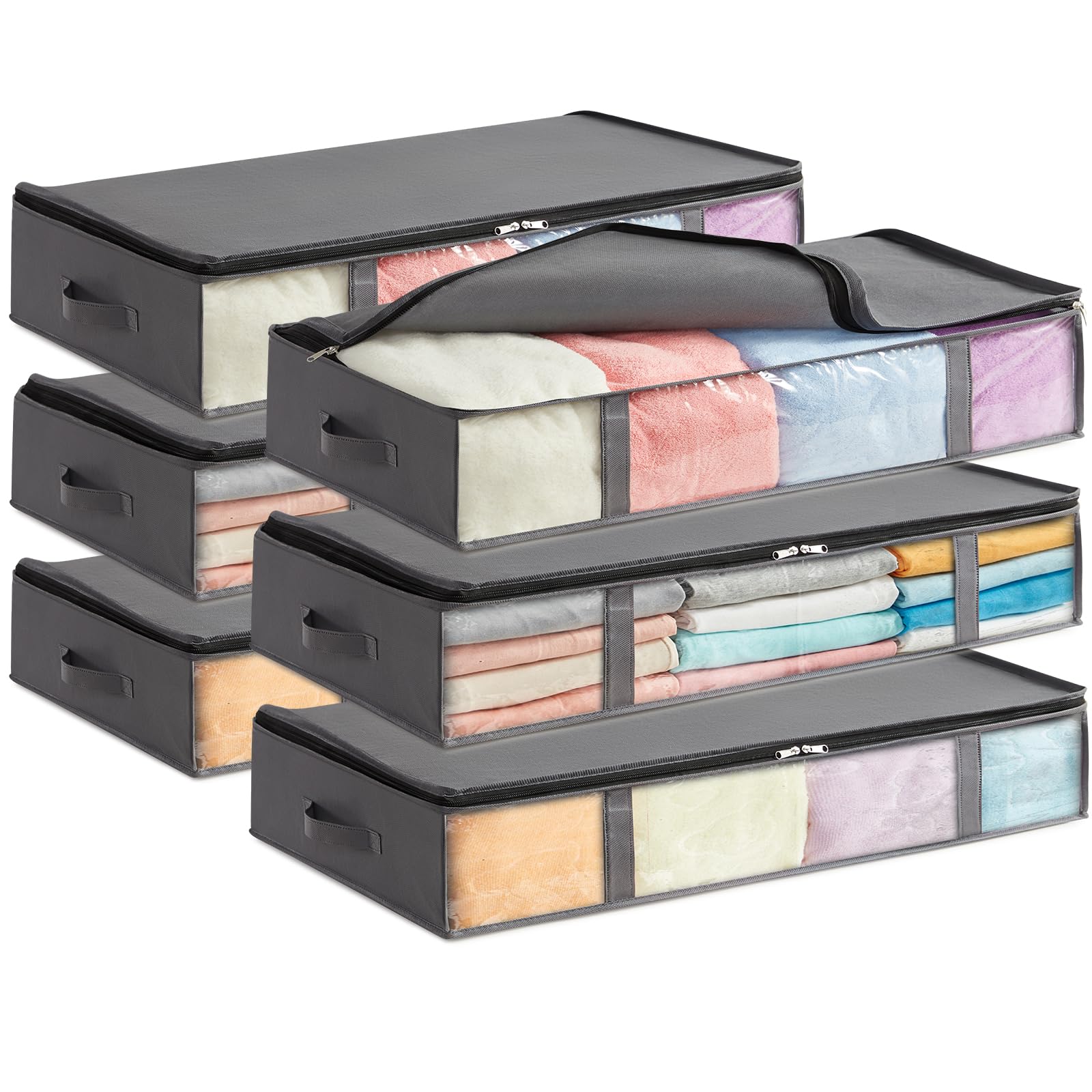 Lifewit 6 Stück 75L Unterbett Aufbewahrungsbox, Faltbare Unterbettkommode Aufbewahrungstasche Storage Boxes mit Deckel, Unterbett Aufbewahrung für Kleider Unterbett Kleiderschrank, Grau