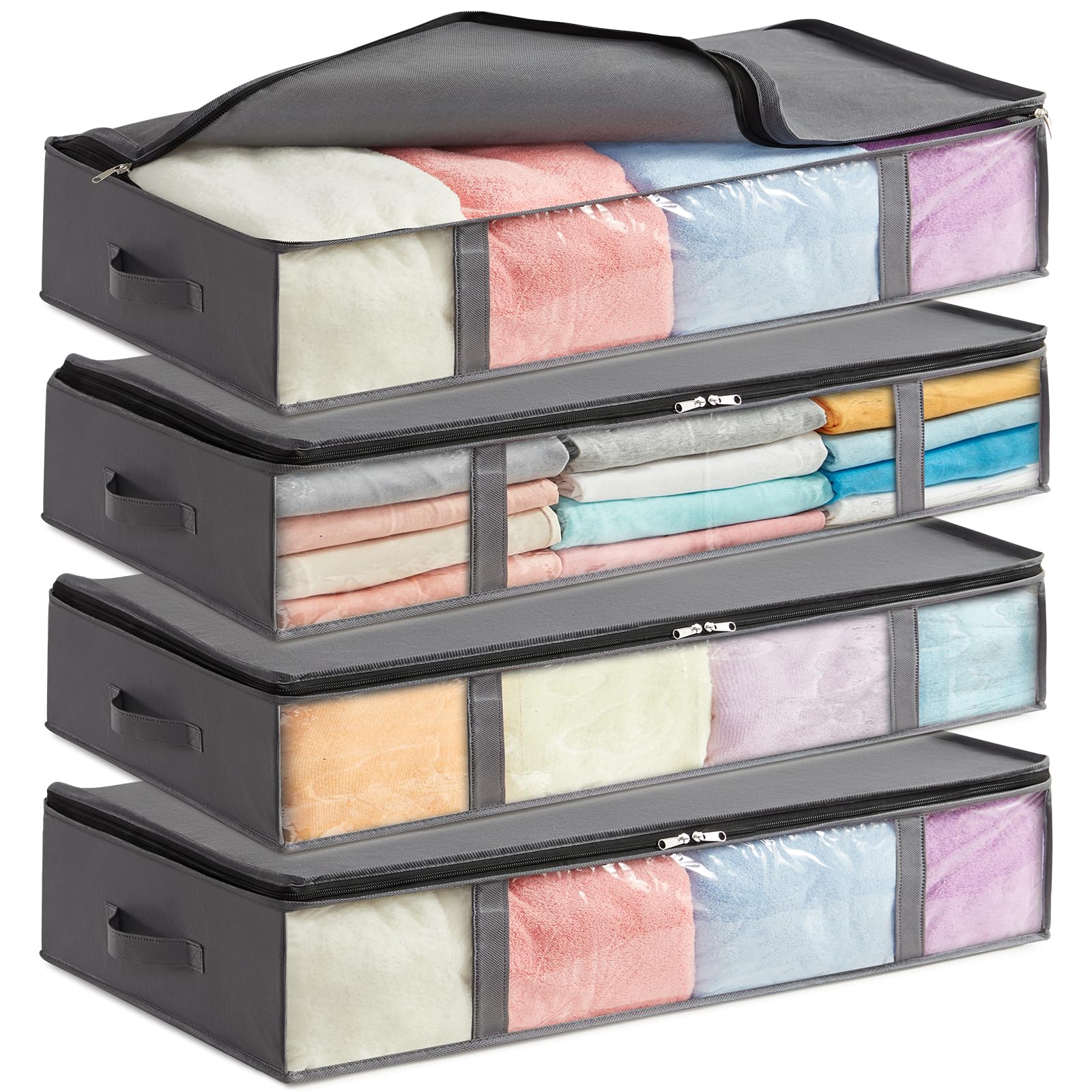 Lifewit 4 Stück 75L Unterbett Aufbewahrungsbox, Faltbare Unterbettkommode Aufbewahrungstasche Storage Boxes mit Deckel, Unterbett Aufbewahrung für Kleider Unterbett Kleiderschrank, Grau
