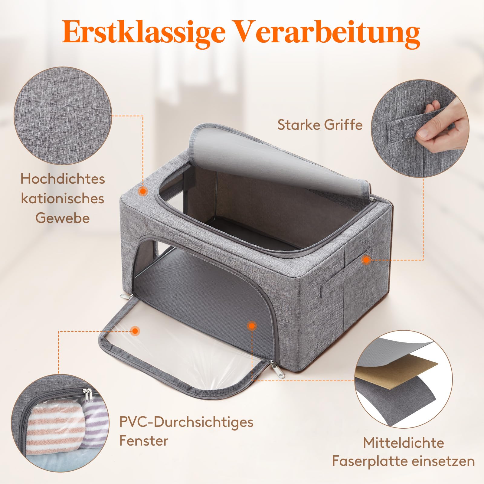 Lifewit Kleiderschrank Aufbewahrungsbehälter mit Metallrahmen, stapelbare faltbare Organisationsboxen mit Deckel, Stoff Kleiderschrank Organiser 25L mit klarem Fenster, Griffe, 6er Set, Hellgrau
