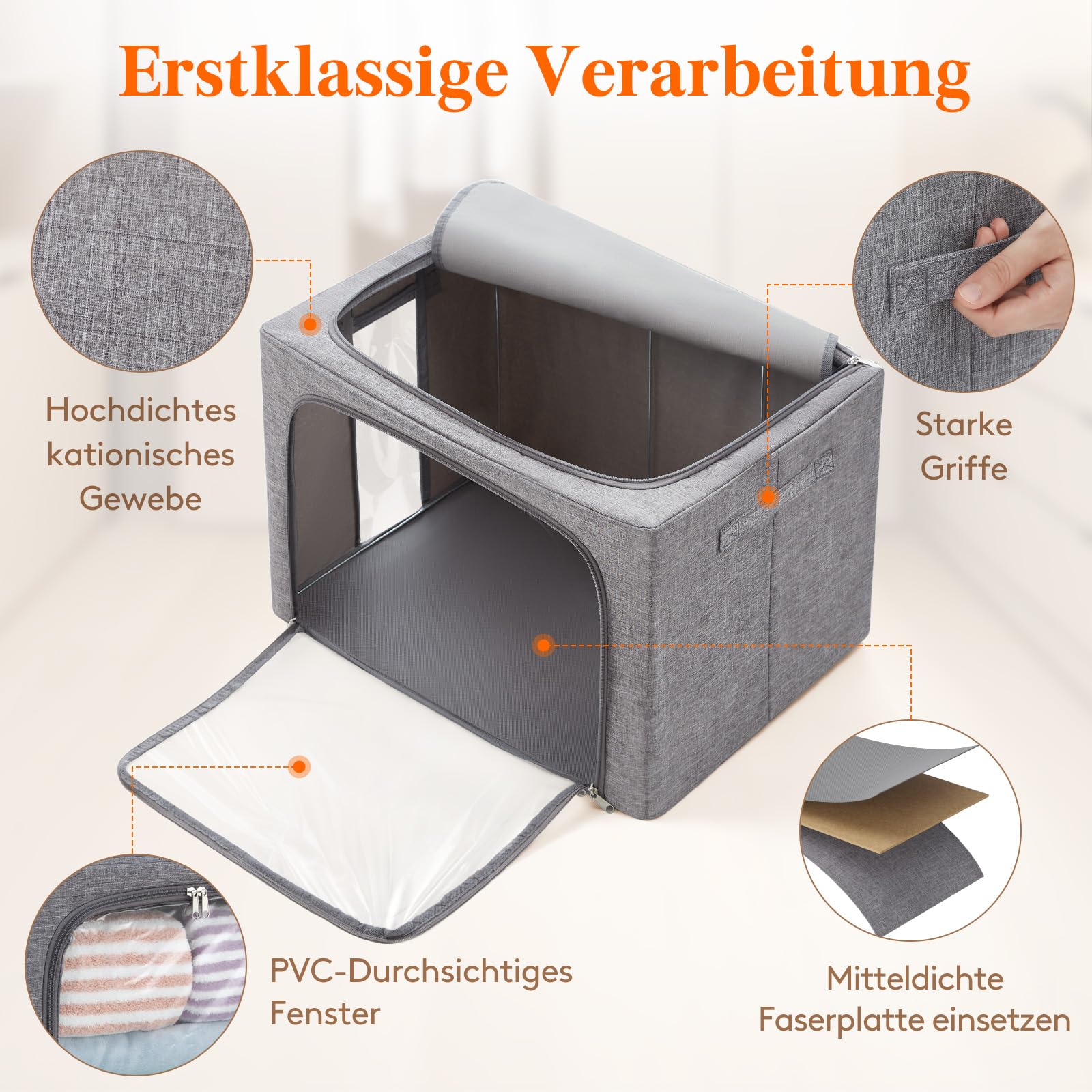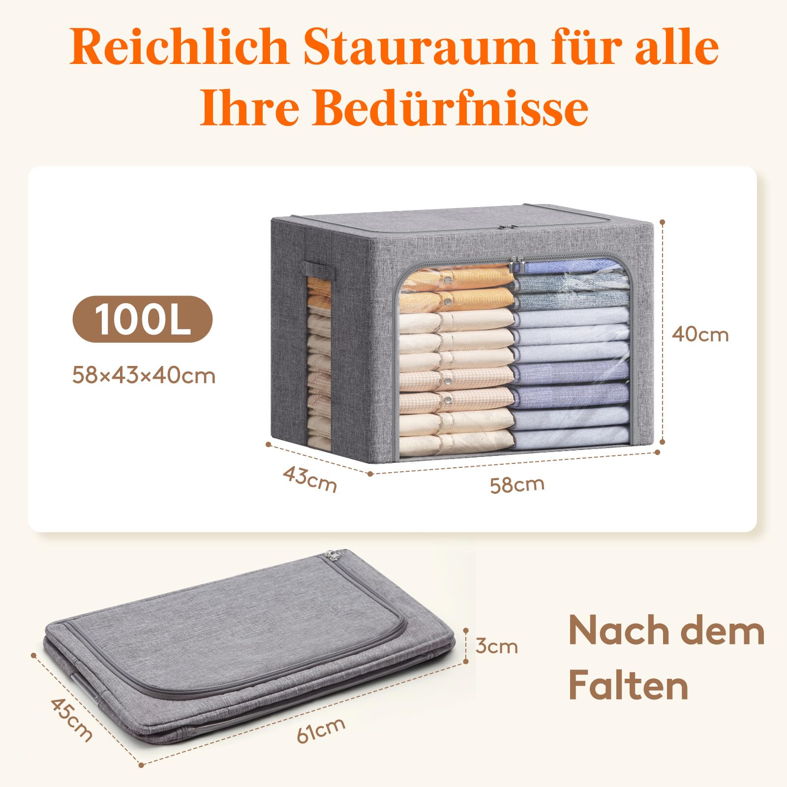 Lifewit 100L Aufbewahrungsbox mit Deckel, Kleidung Aufbewahrung, Faltbare Kleideraufbewahrung mit Metallrahmen, Stoffbox mit Griffen & Fenster, Aufbewahrung Kleiderschrank, 3er Set, Hellgrau
