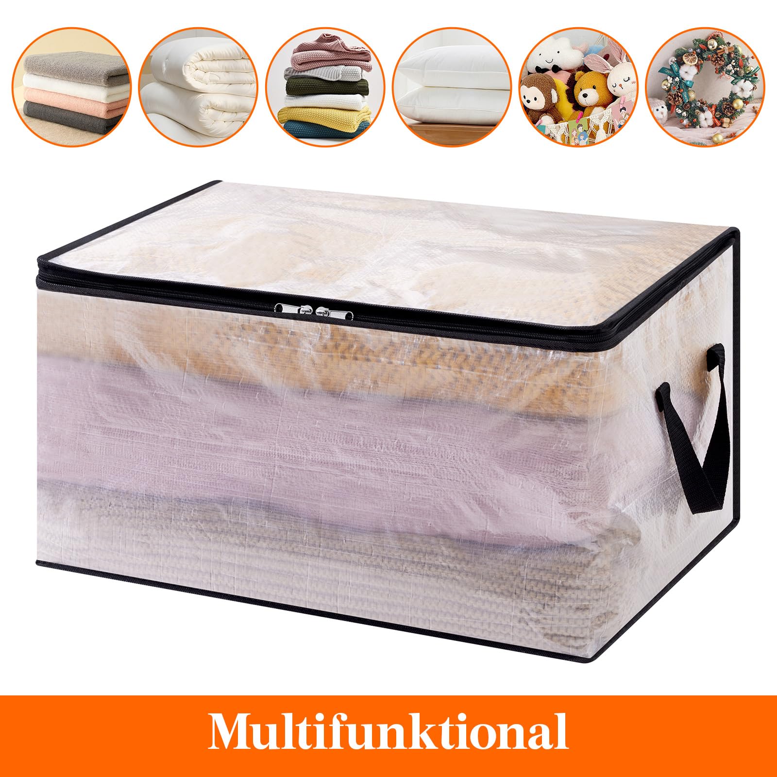 Lifewit 2 Stück Transparente Plastik Aufbewahrungstasche, 60L Kleideraufbewahrung Kleiderschrank Aufbewahrung Umzugskartons Aufbewahrungsboxen mit Verstärkter Griff für bettdecken, Kleidung, Decke
