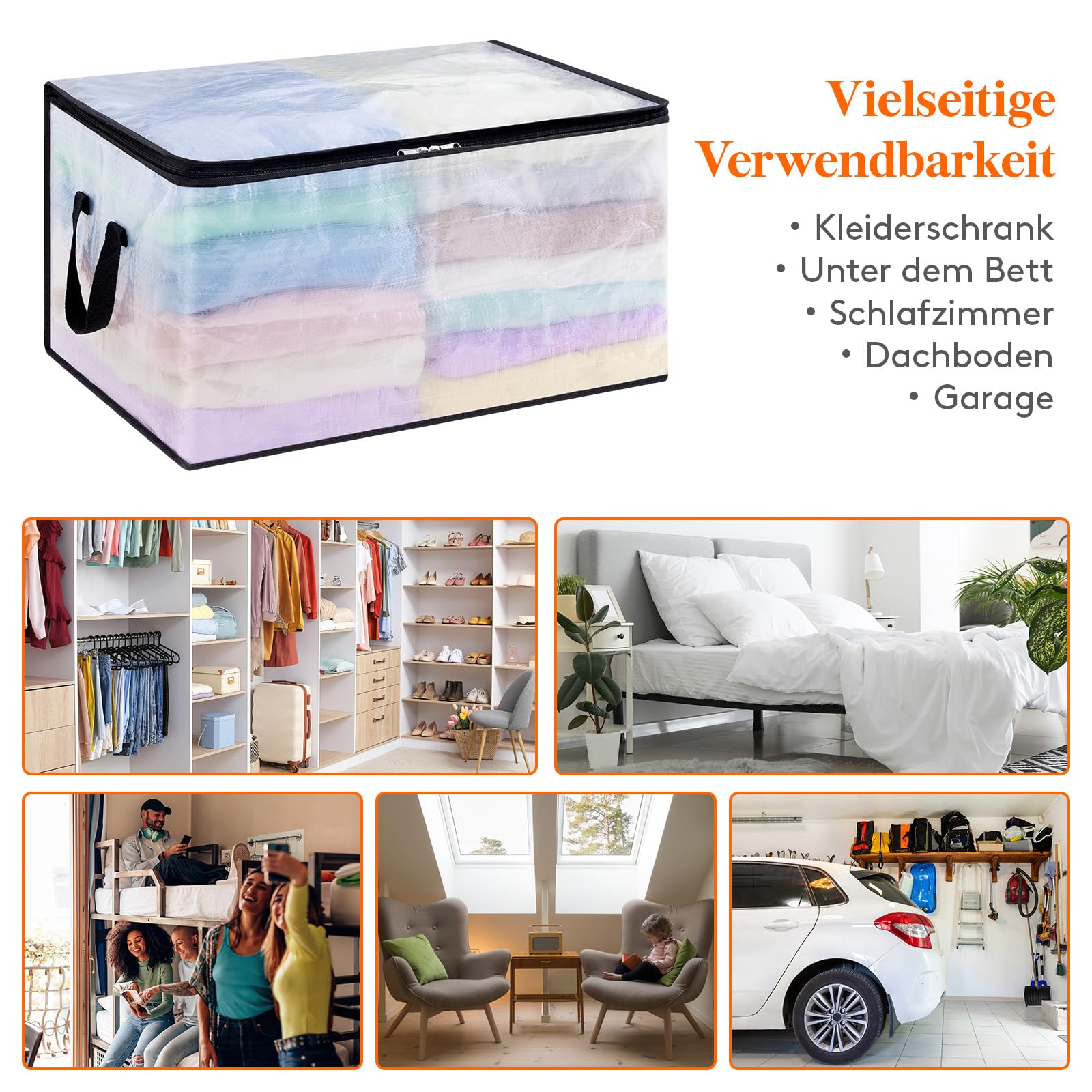 - Vielseitige Verwendung : Ganz gleich, ob Sie die Aufbewahrungstasche im Schlafsal, auf dem Dachboden, im Keller oder im Schlafzimmer verwenden, diese Deckentasche fügt sich nahtlos in jede Umgebung ein und maximiert den verfügbaren Stauraum. Sie können sicher sein, dass Ihre Decken ordentlich und leicht zugänglich bleiben, ganz gleich, welchen Aufbewahrungsort Sie wählen.