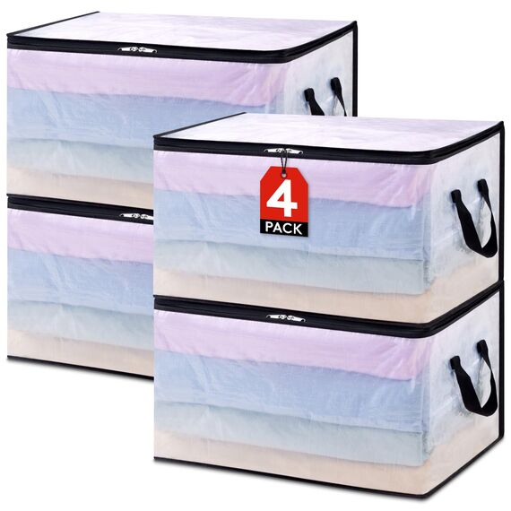 Lifewit 4 Stück Transparente Plastik Aufbewahrungstasche, 60L Kleideraufbewahrung Kleiderschrank Aufbewahrung Umzugskartons Aufbewahrungsboxen mit Verstärkter Griff für bettdecken, Kleidung, Decke