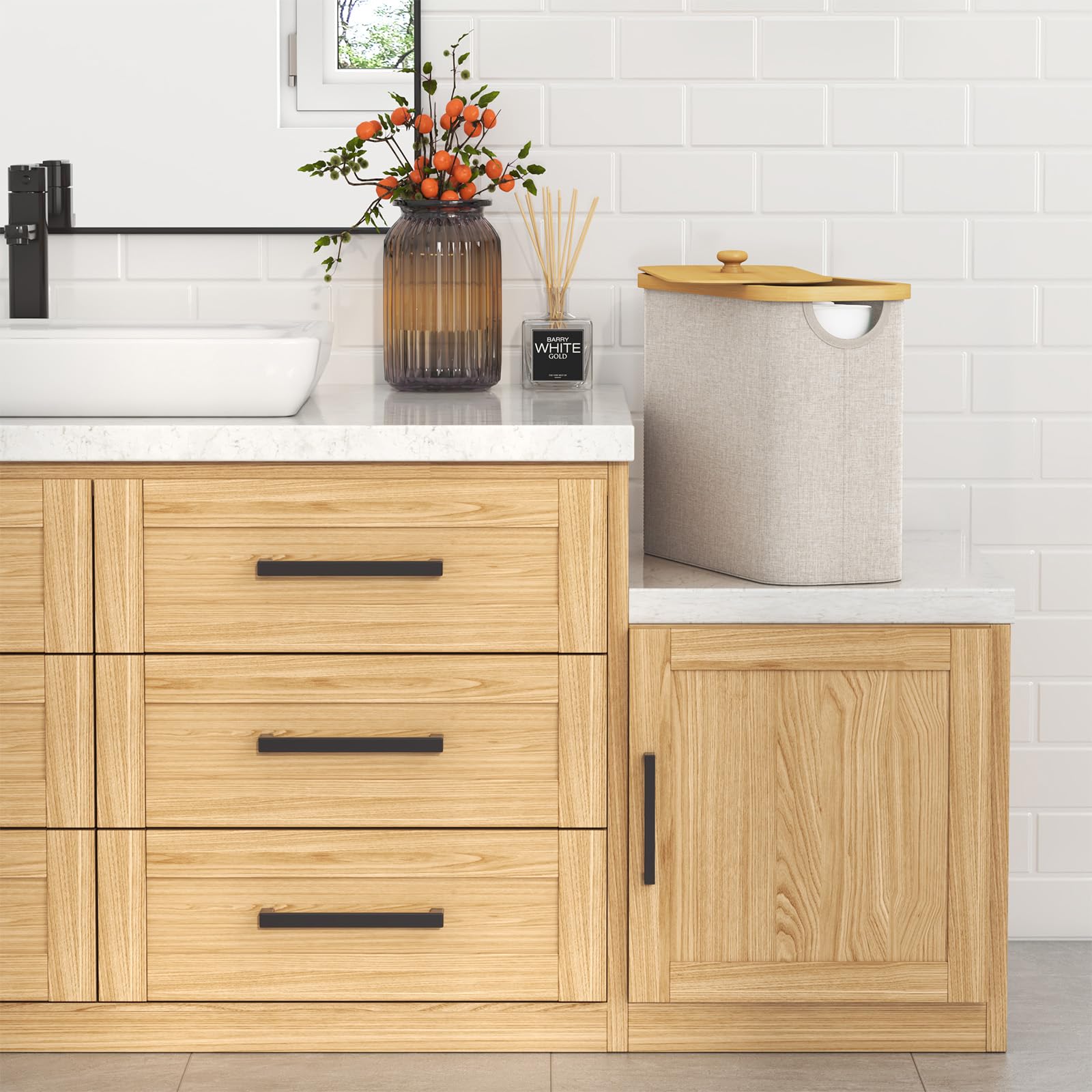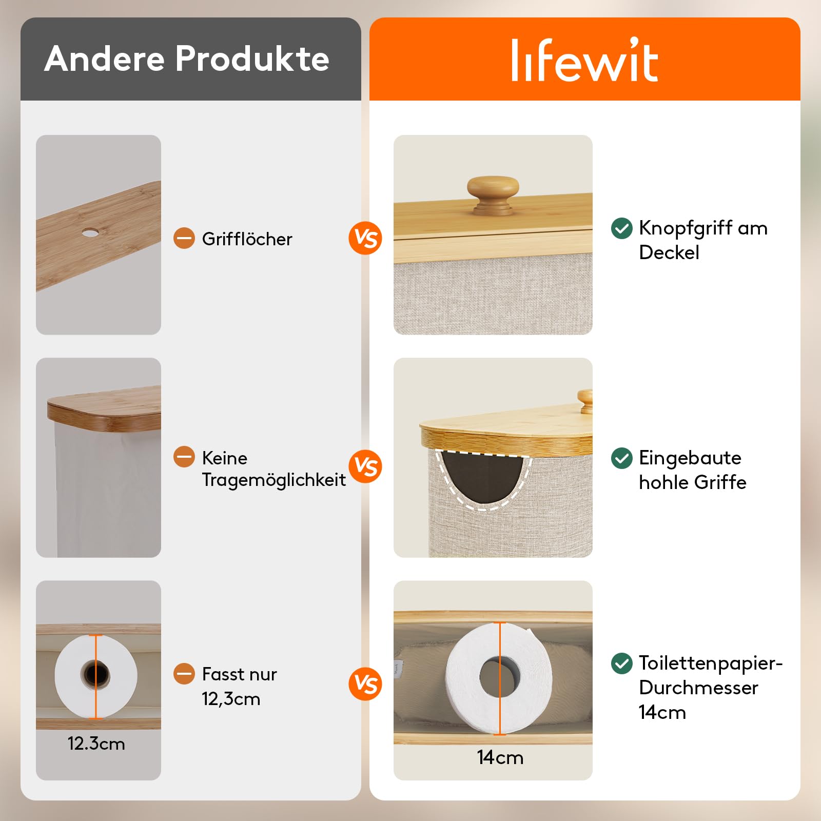 Lifewit Toilettenpapier Aufbewahrungskorb, Bambus Badezimmer Organizer, Klopapier Aufbewahrungsschrank für Enge Räume, Toilet Paper Behälter mit Deckel, 23L,Beige