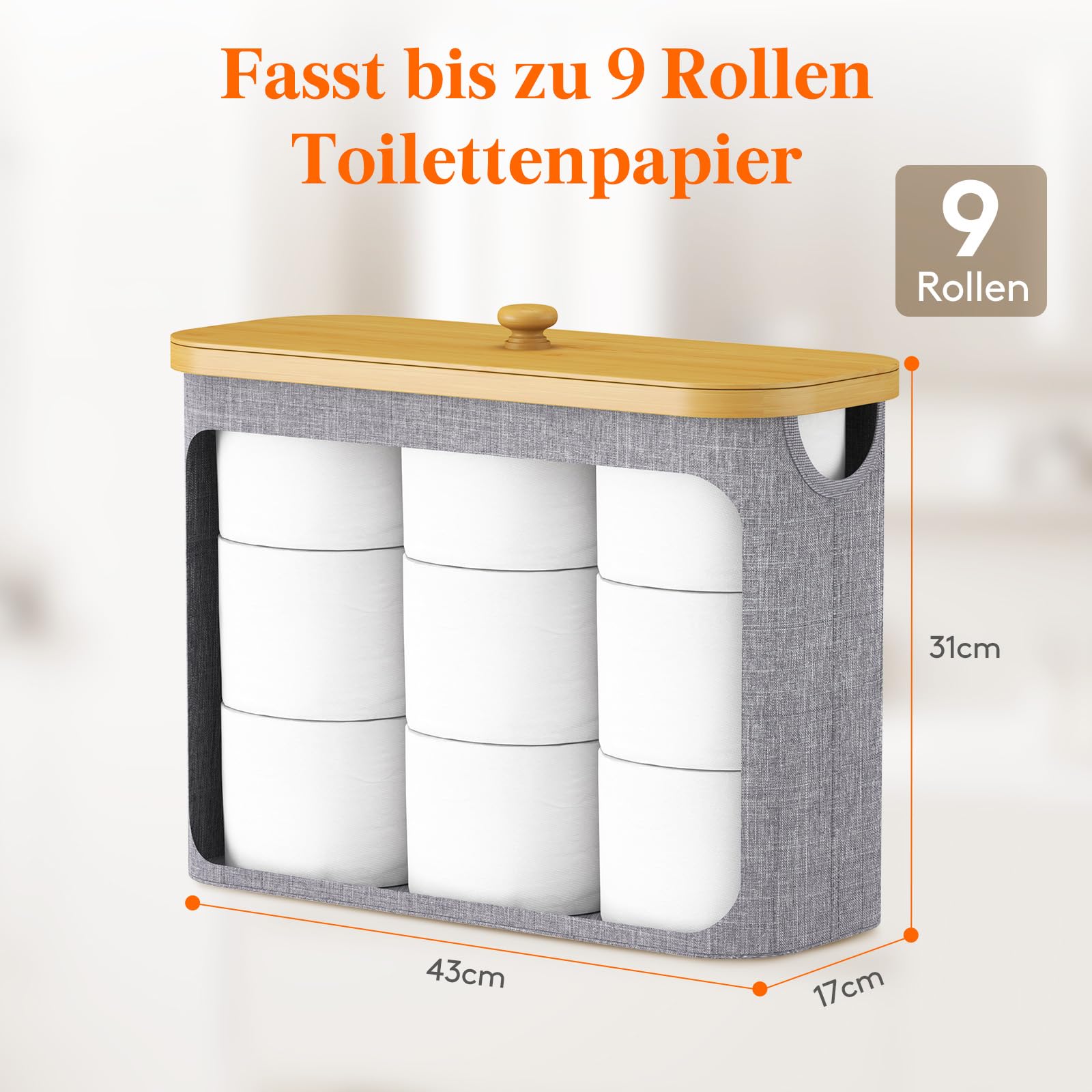Lifewit 9 Roll 23L Toilettenpapier Aufbewahrungskorb, Bambus Toilettenpapier Halter Organizer mit Deckel, Hellgrau