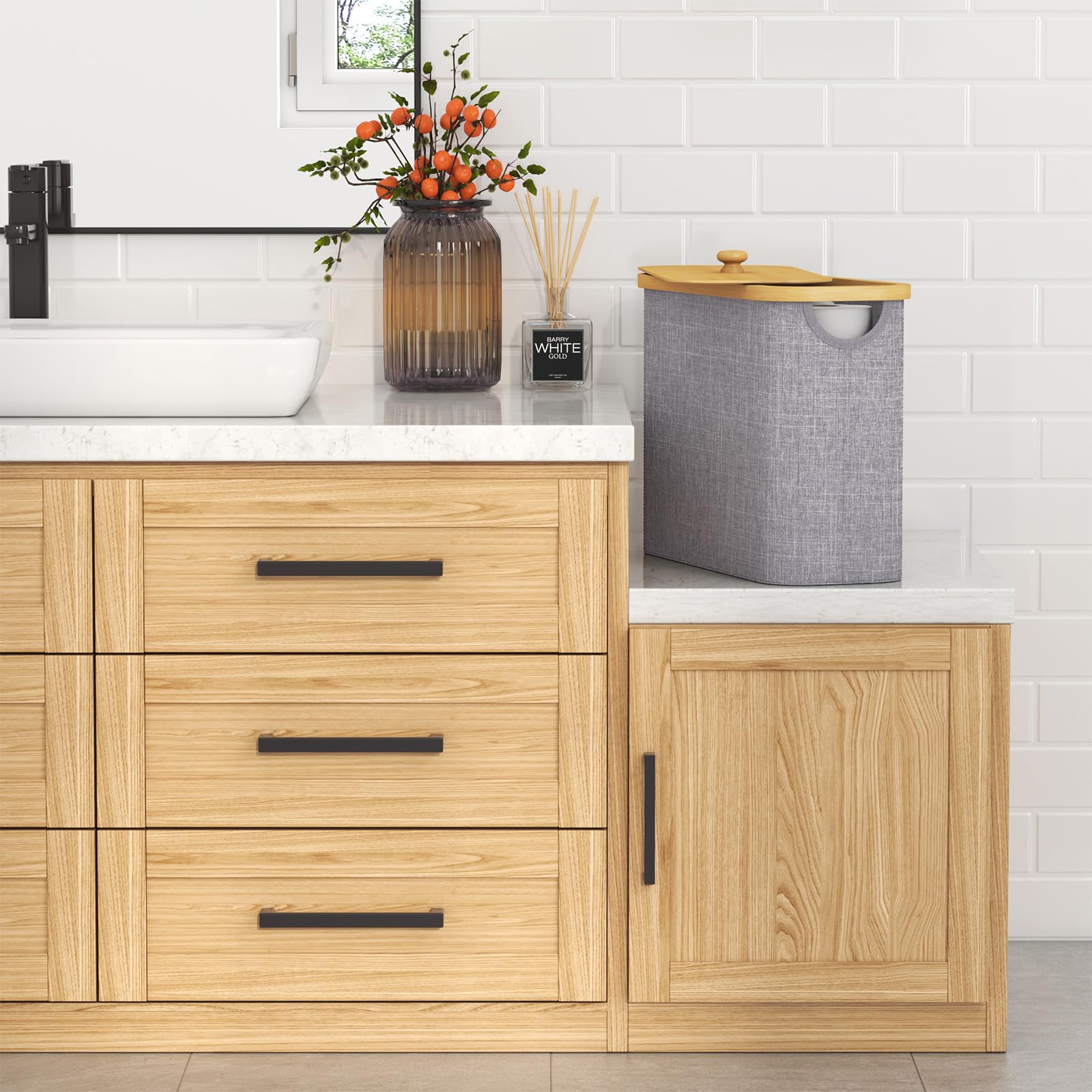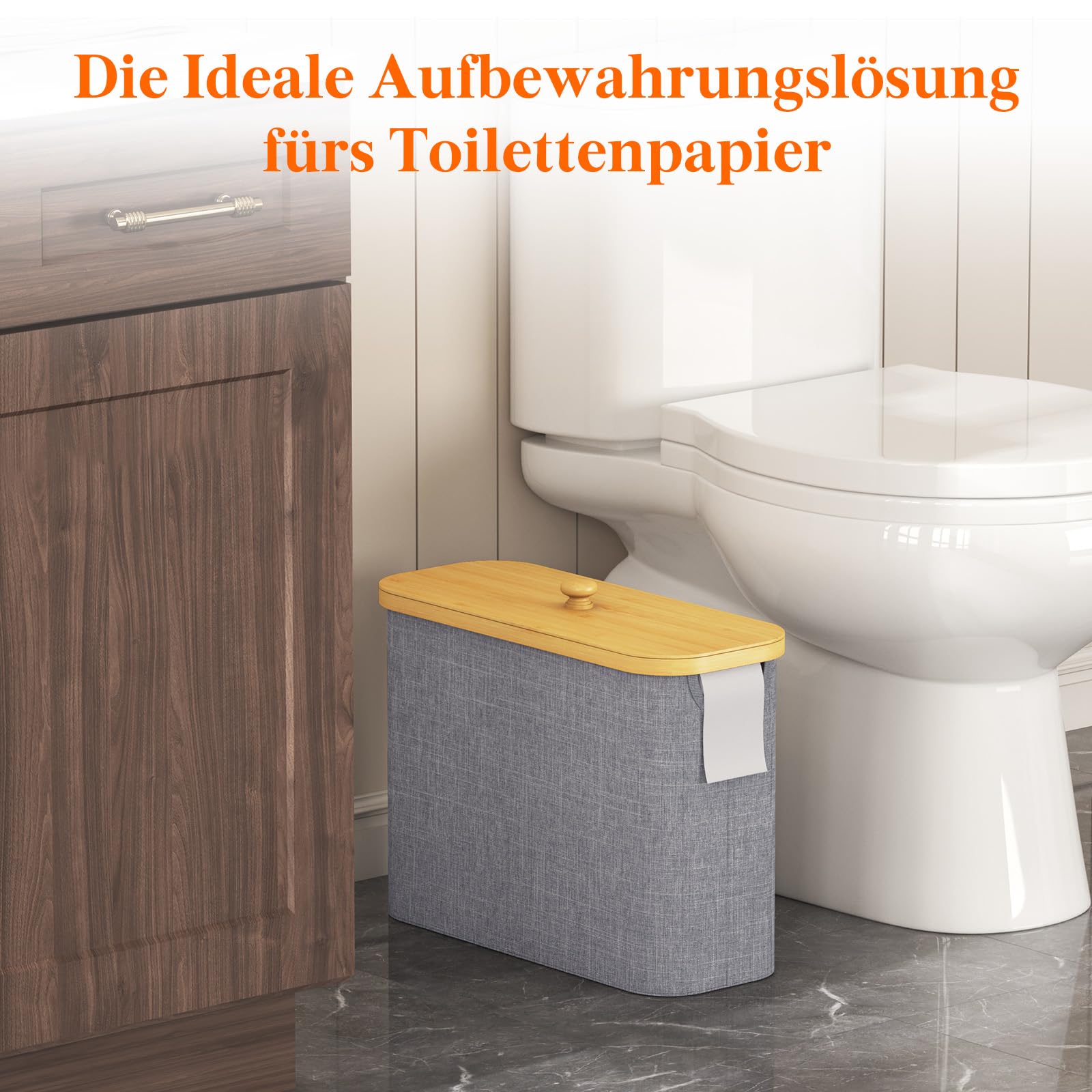 Lifewit Toilettenpapier Aufbewahrungskorb, Bambus Badezimmer Organizer, Klopapier Aufbewahrungsschrank für Enge Räume, Toilet Paper Behälter mit Deckel, 23L,Grau