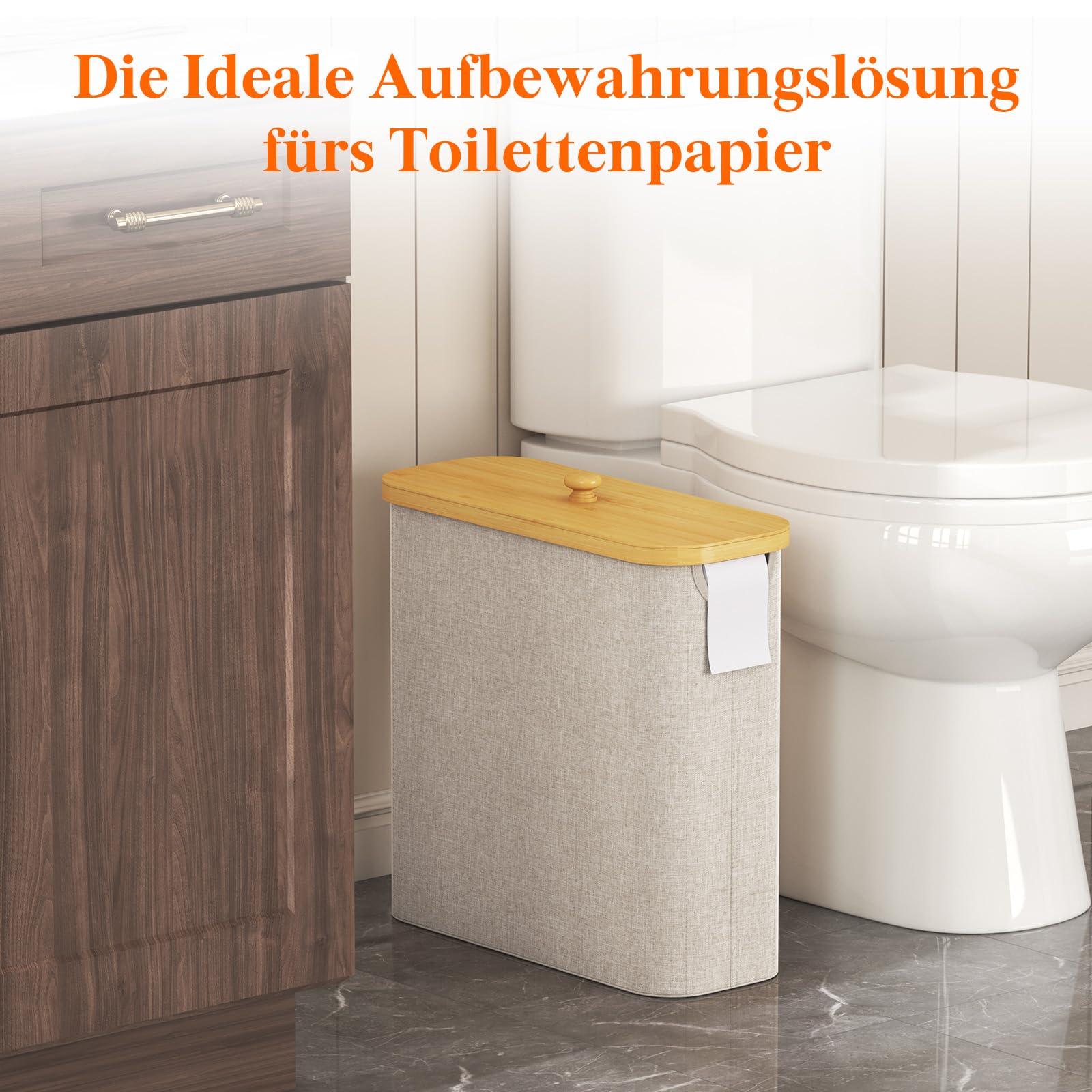 Lifewit Toilettenpapier Aufbewahrungskorb, Bambus Badezimmer Organizer, Klopapier Aufbewahrungsschrank für Enge Räume, Toilet Paper Behälter mit Deckel, 30L,Beige