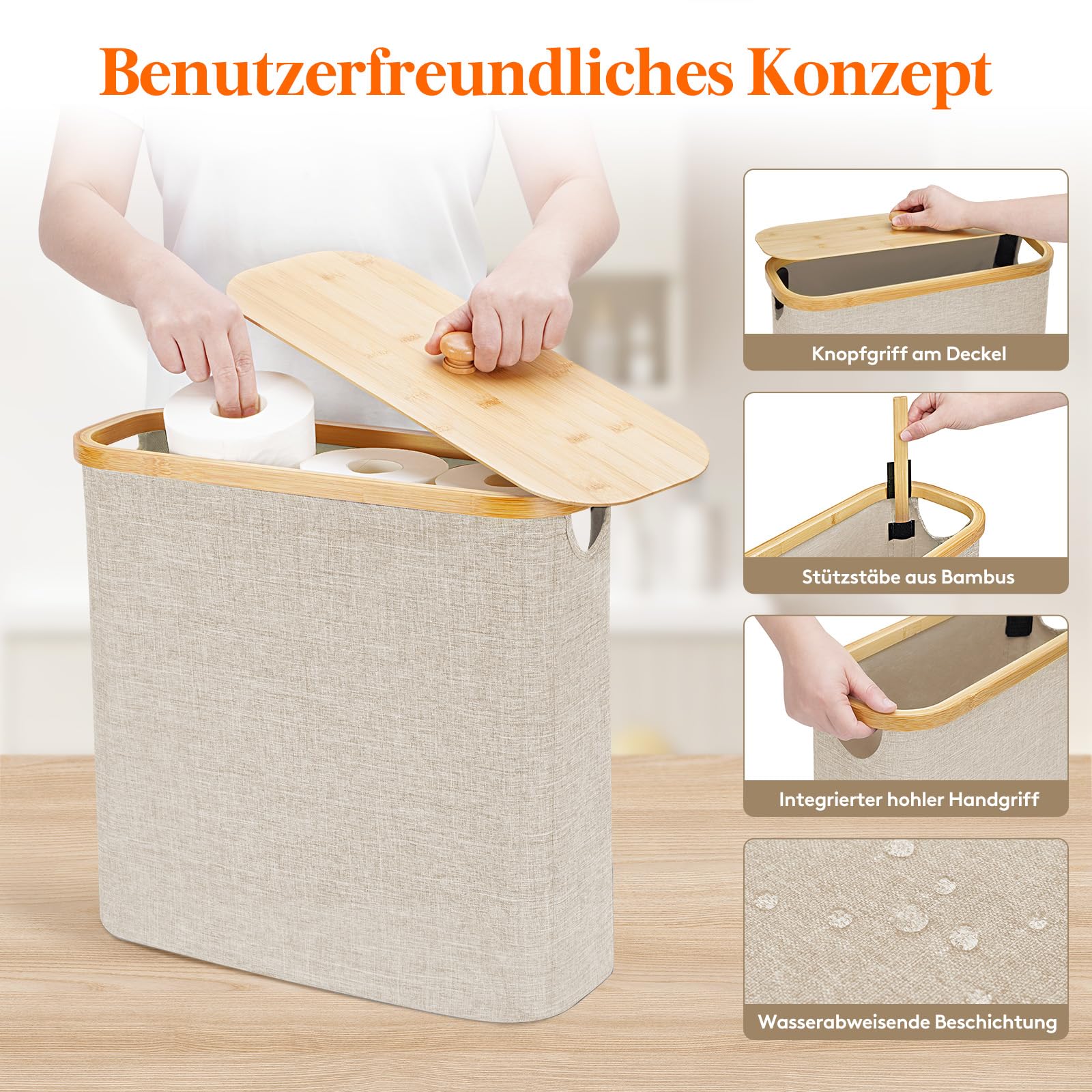 Lifewit 30L Toilettenpapier Aufbewahrungskorb, Bambus Badezimmer Organizer, Badezimmer Aufbewahrungsschrank, Toilet Paper Behälter mit Deckel, 41.5 x 17 x 41 cm, Beige