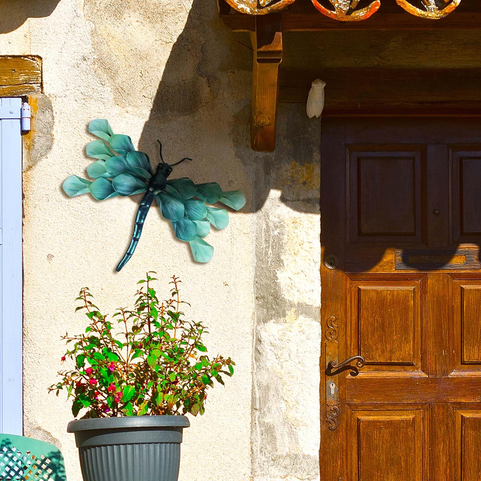 Liffy Metall Libelle Wanddekoration im Freien Zaun Kunst ausserhalb hängende Dekorationen für Garten, Wohnzimmer, Schlafzimmer (Blue02)