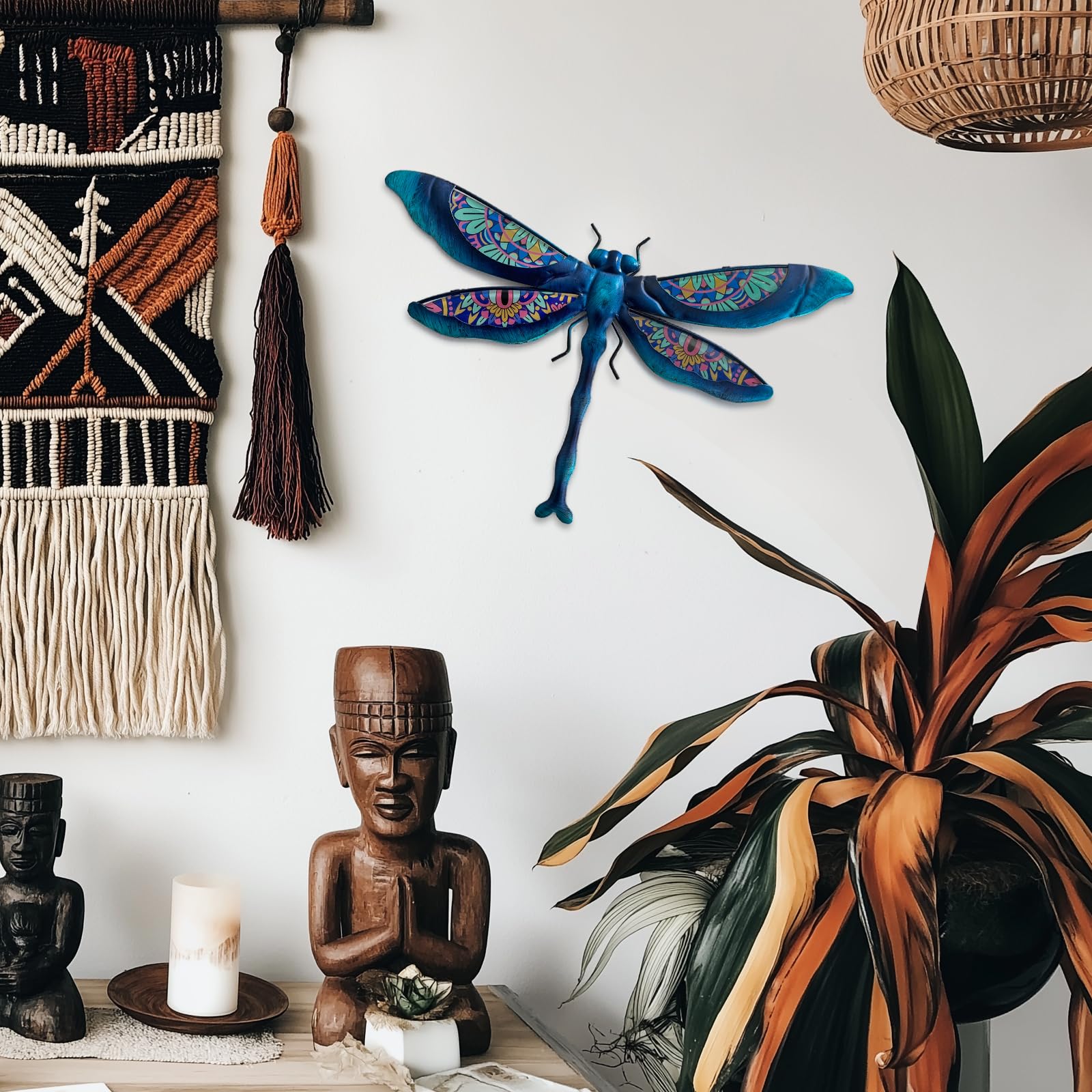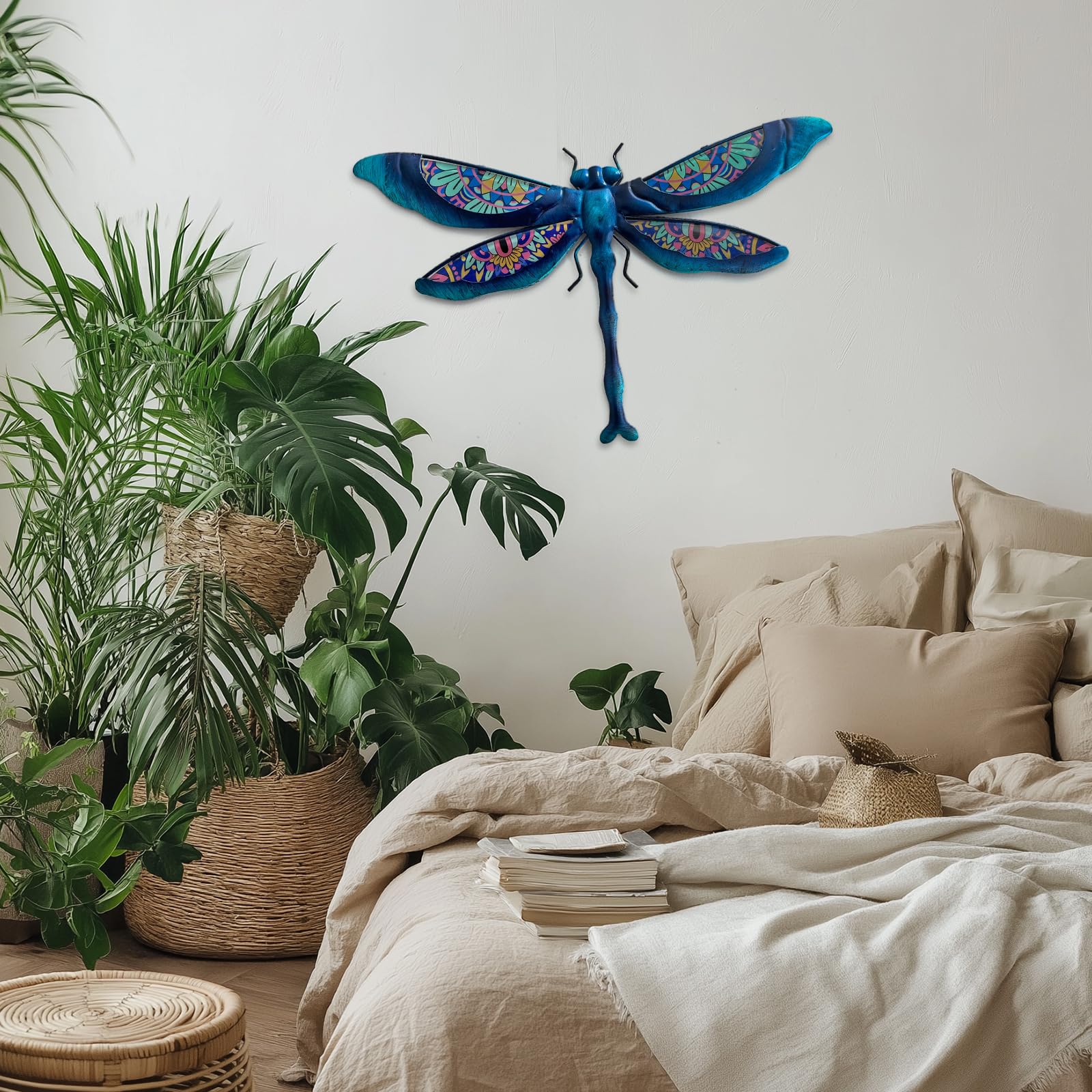 Liffy Metall Libelle Wanddekoration im Freien Zaun Kunst ausserhalb hängende Dekorationen für Garten, Wohnzimmer, Schlafzimmer (Boho)