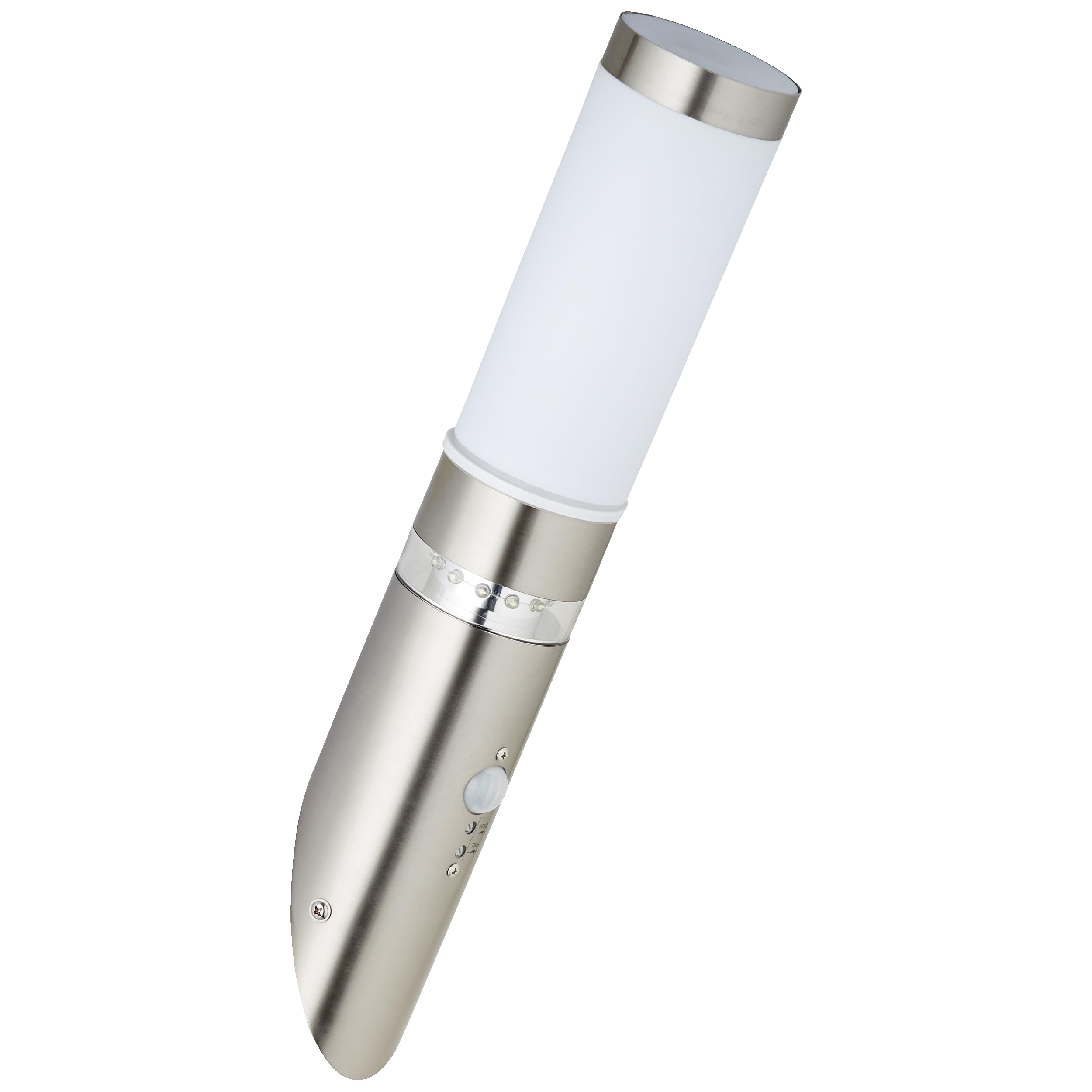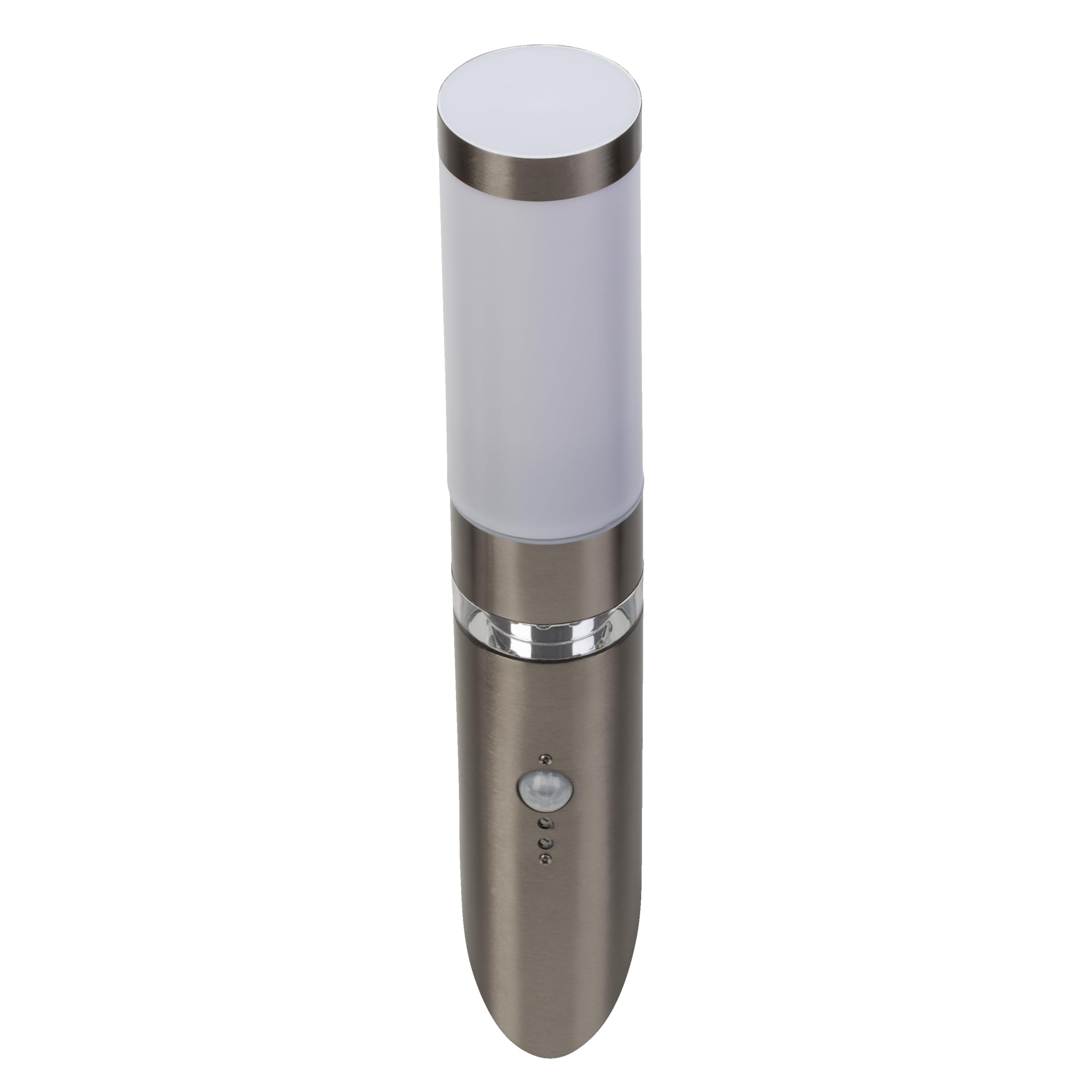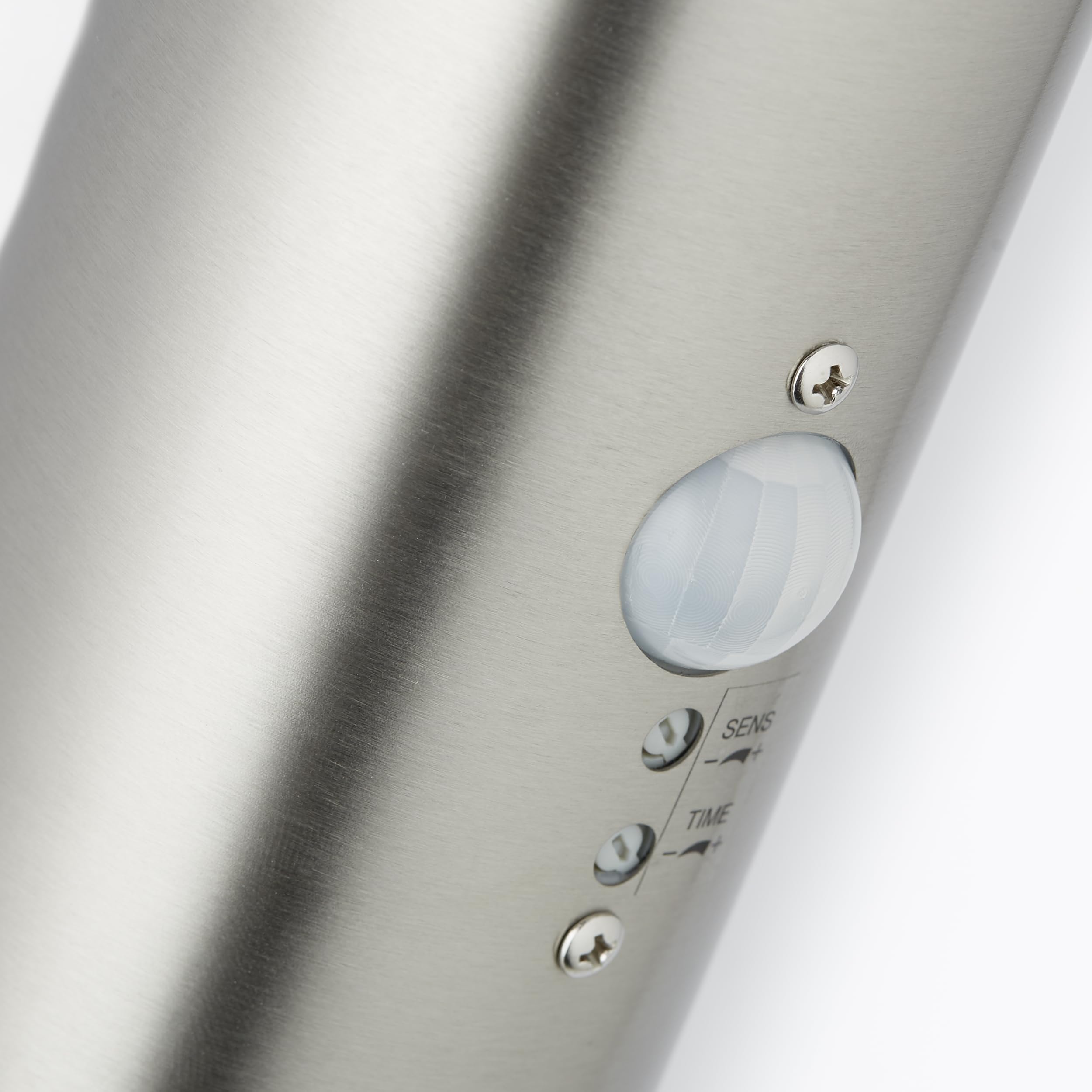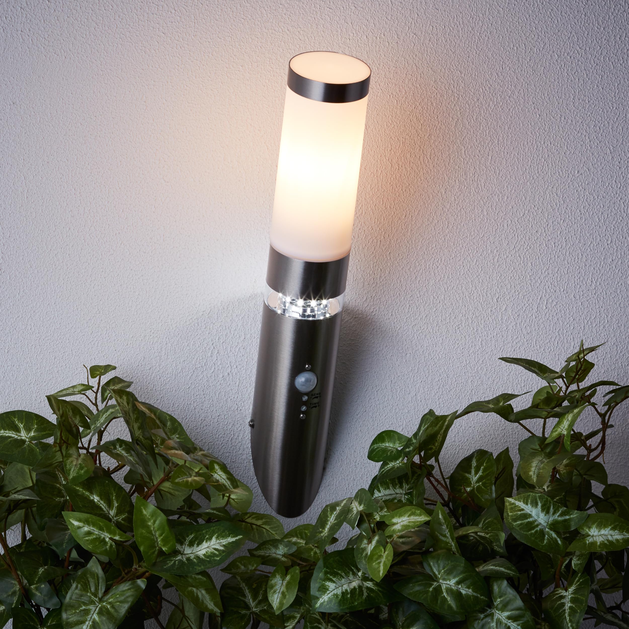 Lightbox spritzwassergeschützte LED Wandfackel - Wandfackel für Aussen mit einstellbarem Bewegungsmelder & Dämmerungsschalter für LED-Dekolicht - aus Metall/Kunststoff - in Edelstahlfarben - Ø 8 cm