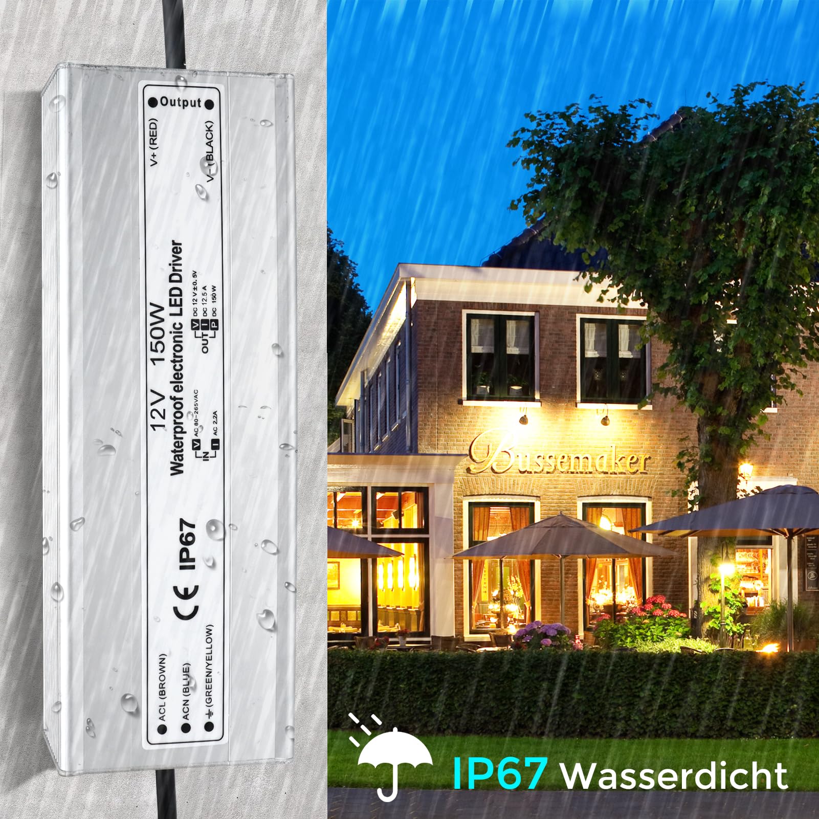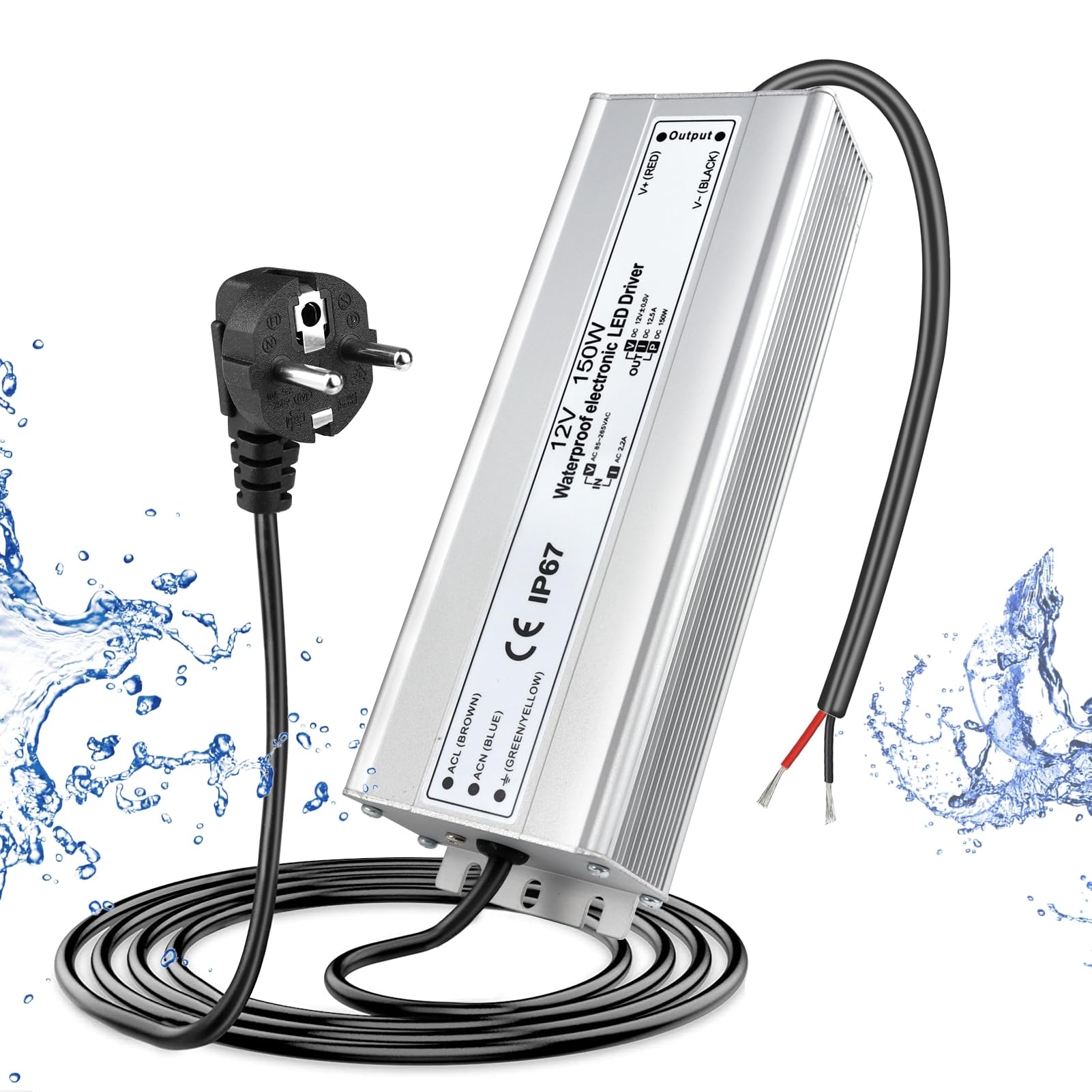 LightingWill LED Trafo 12V 150W IP67, Outdoor Wasserdicht Transformator mit Stecker, Netzteil für LED Streifen Lampen Strahler Lichtbänder