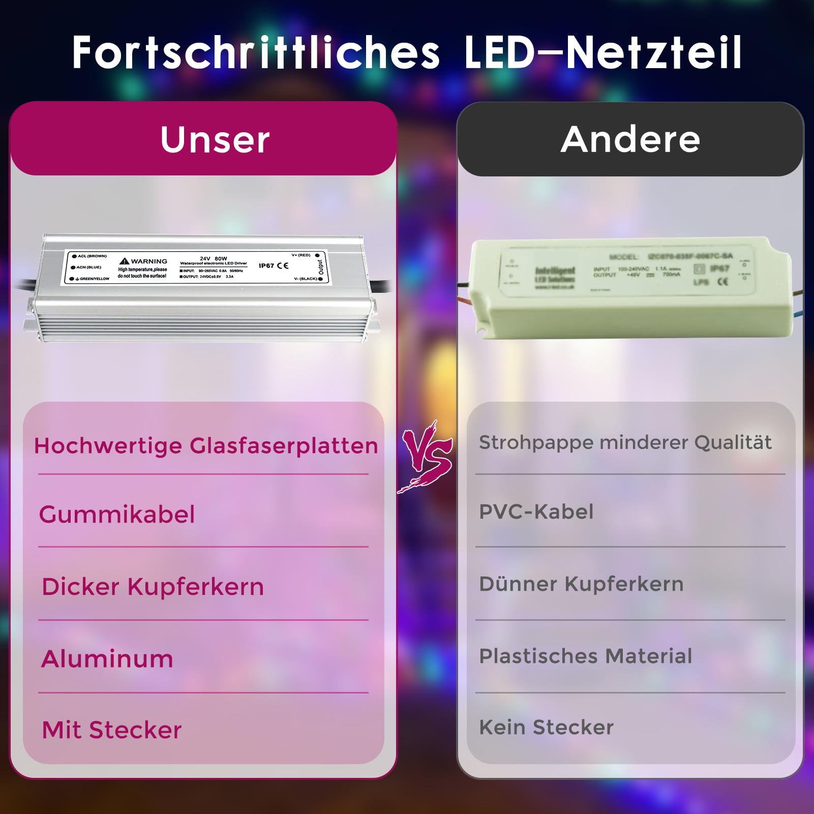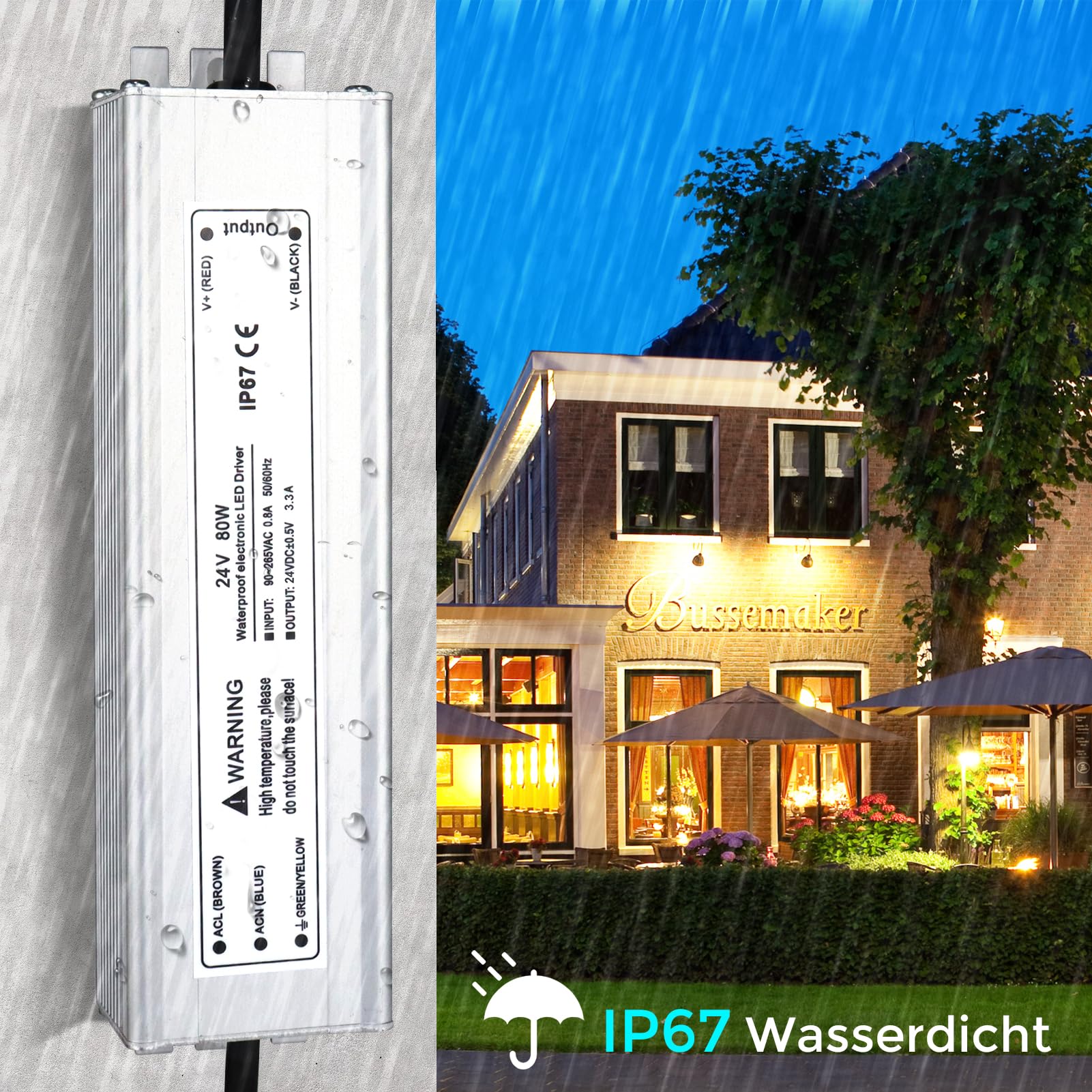LED Trafo 24V 80W IP67, Outdoor Wasserdicht Transformator mit Stecker, LED Netzteil Treiber 230V auf DC 24 Volt Adapter, Driver Aussen für LED-Streifen Lampen Strahler Lichtbänder