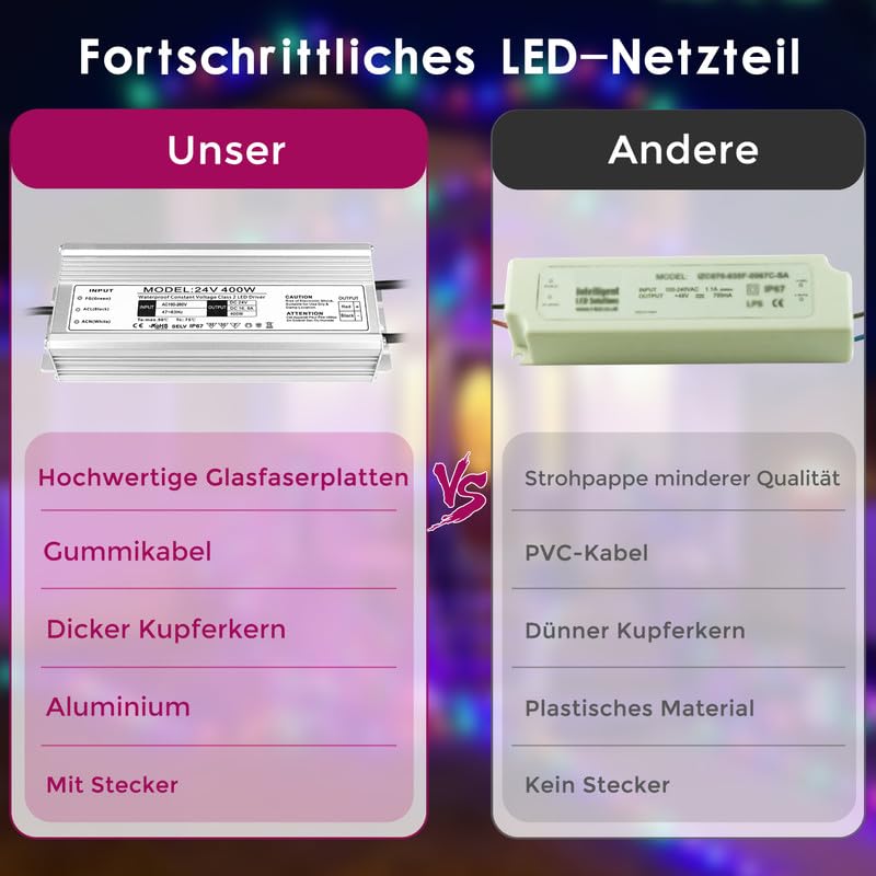 Öffnen oder verändern Sie das LED-Netzteil nicht.