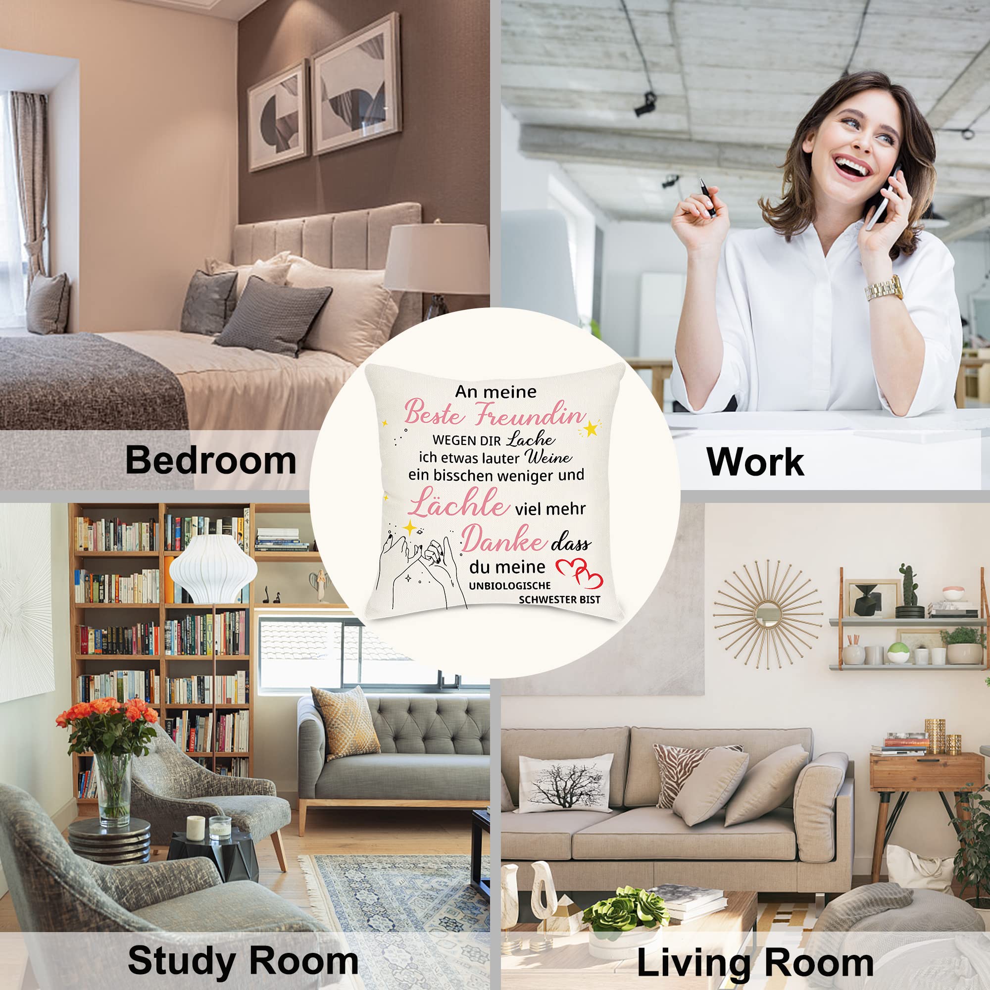 Lightzz Kissenbezug für Beste Freundin mit Dankesspruch, 45 x 45cm Kissenbezug mit Taschen, Geschenk für Beste Freunde Mädchen Bestie