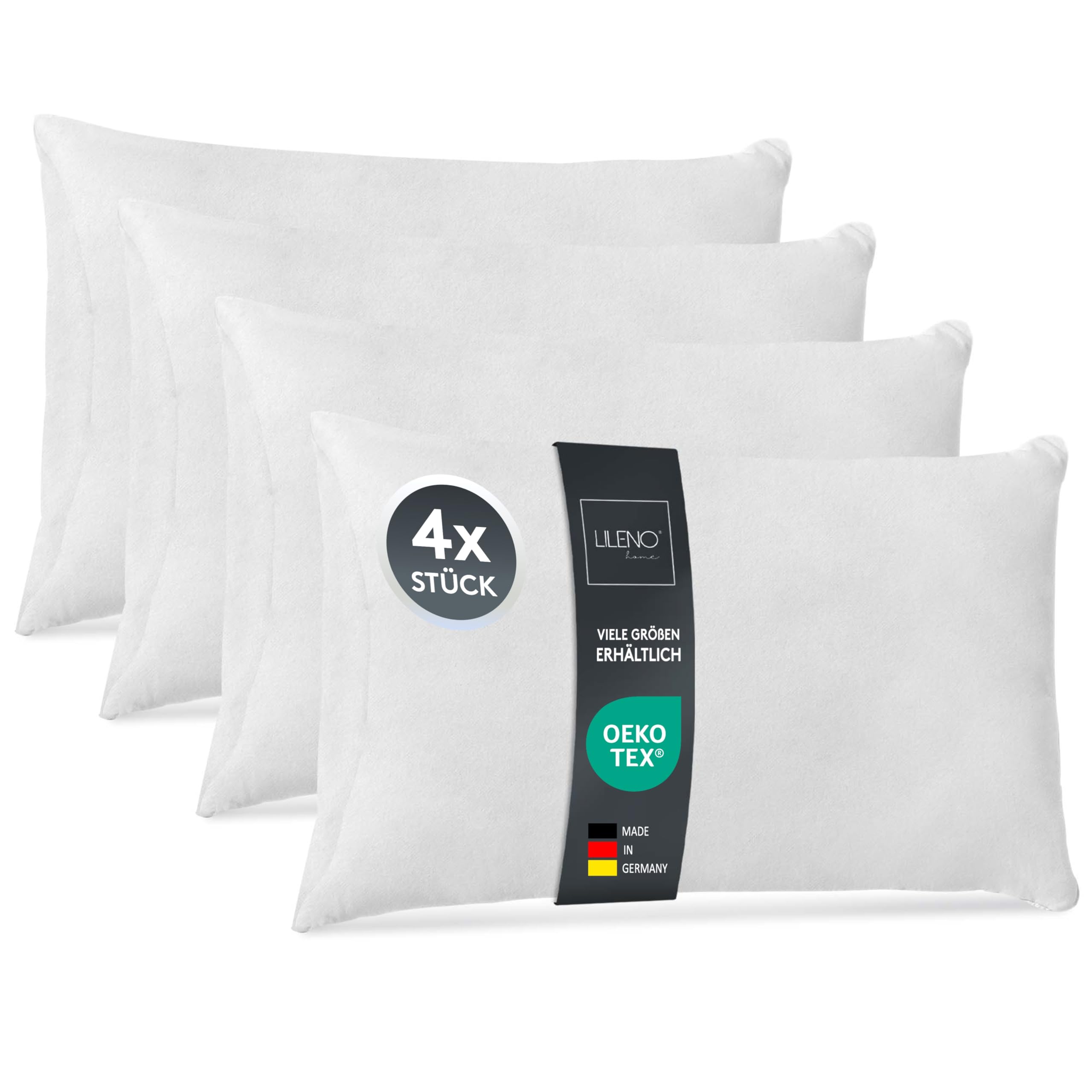 LILENO HOME 4er Set Premium Kissenfüllung 70 x 90 cm Kissen Inlett f. Dekokissen mit PolyesterfüllungSchön weich, komfortabel und prall gefüllt - so sollte das ideale Kissen sein. Und so sind unsere Kissenfüllungen! Das weiche Material aus 100% silikonisierten Polyester Hohlfasern ist stabil, feuchtigkeitsabweisend und pflegeleicht. Trotz seiner Leichtigkeit hält die Füllung auch grösseren Belastungen stand, da das Oberflächenmaterial sehr reissfest und formbeständig ist. Die Füllung verleiht ihren Kissenbezügen eine pralle Form, die zum Entspannen einlädt.Bei Verunreinigungen oder zum Auffrischen kann der Bezug einfach bei 30°C in der Maschinenwäsche gereinigt werden. Hohe Qualität - Made in Germany!Farbe: weissOberstoff: 100% PolyesterFüllung: 100% Silikonisierte Polyesterhohlfaser-FlockenOEKO-TEX Standard 100Pflegehinweis: Waschbar bis 30°C Pflegeleicht / schonende Trocknung im TrocknerALLERGIKERGEEIGNET In folgenden Grössen erhältlich30 x 30 cm30 x 50 cm40 x 40 cm40 x 50 cm45 x 55 cm40 x 60 cm40 x 80 cm45 x 45 cm50 x 50 cm55 x 55 cm50 x 60 cm50 x 70 cm60 x 60 cm65 x 65 cm70 x 90 cm80 x 80 cmMarkenqualität MADE IN GERMANY – überzeug dich selbst und bestell dir noch heute unsere hochwertigen Kissenfüllungen von LILENO HOME.LILENO HOMEAus einer Idee wurde unser Konzept. LILENO liefert Artikel für Lifestyle und schönes Wohnen und praktische Lösungen für dein komplettes Zuhause.