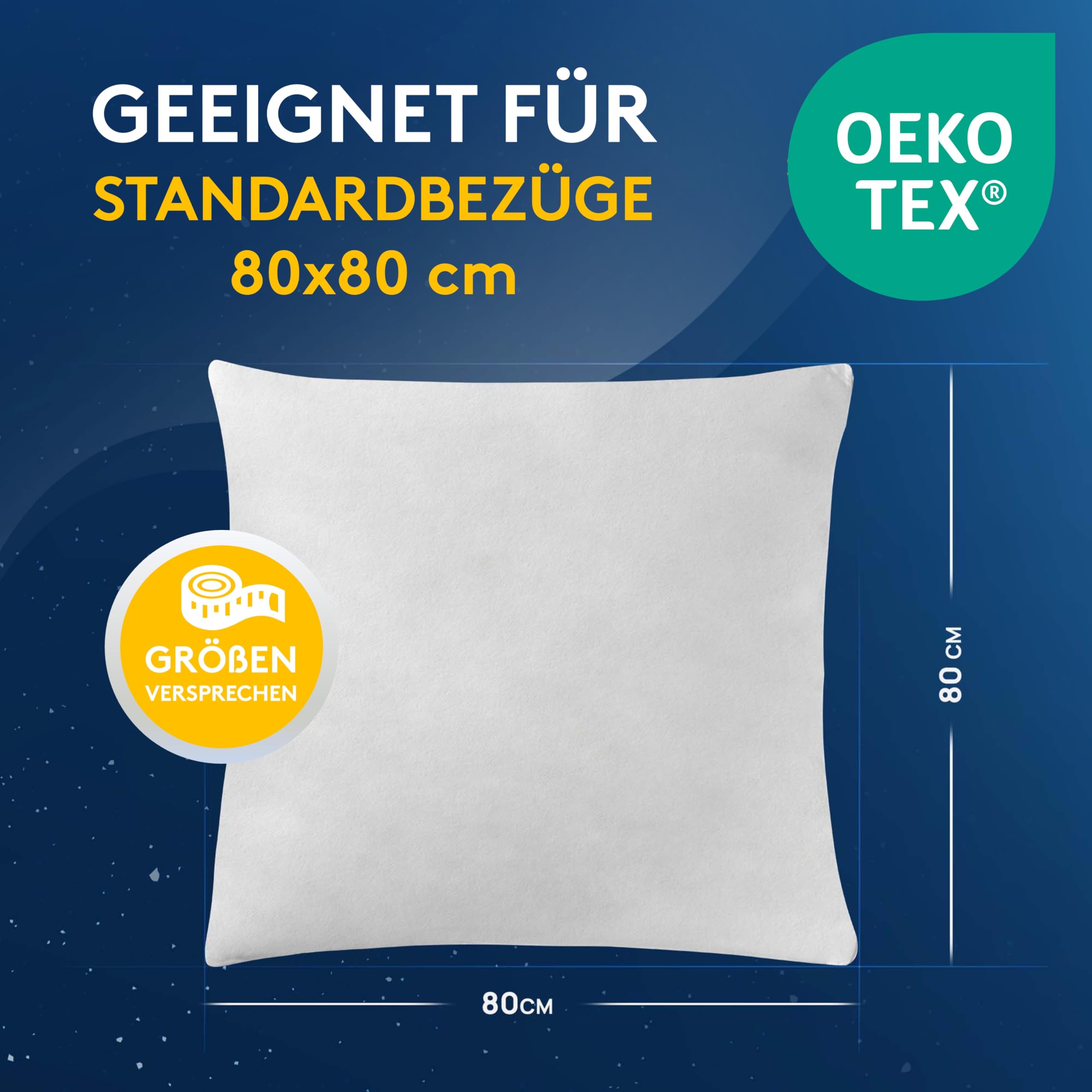 LILENO HOME 6er Set Premium Kissenfüllung 80x80 cm Kissen Inlett Schlafkissen mit PolyesterfüllungSchön weich, komfortabel und prall gefüllt - so sollte das ideale Kissen sein. Und so sind unsere Kissenfüllungen! Das weiche Material aus 100% silikonisierten Polyester Hohlfasern ist stabil, feuchtigkeitsabweisend und pflegeleicht. Trotz seiner Leichtigkeit hält die Füllung auch grösseren Belastungen stand, da das Oberflächenmaterial sehr reissfest und formbeständig ist. Die Füllung verleiht ihren Kissenbezügen eine pralle Form, die zum Entspannen einlädt.Bei Verunreinigungen oder zum Auffrischen kann der Bezug einfach bei 30°C in der Maschinenwäsche gereinigt werden. Hohe Qualität - Made in Germany!Farbe: weissOberstoff: 100% PolyesterFüllung: 100% Silikonisierte Polyesterhohlfaser-FlockenOEKO-TEX Standard 100Pflegehinweis: Waschbar bis 30°C Pflegeleicht / schonende Trocknung im TrocknerALLERGIKERGEEIGNETIn folgenden Grössen erhältlich30 x 50 cm40 x 40 cm40 x 60 cm40 x 80 cm45 x 45 cm50 x 50 cm50 x 60 cm50 x 70 cm60 x 60 cm80 x 80 cmMarkenqualität MADE IN GERMANY – überzeug dich selbst und bestell dir noch heute unsere hochwertigen Kissenfüllungen von LILENO HOME.LILENO HOMEAus einer Idee wurde unser Konzept. LILENO liefert Artikel für Lifestyle und schönes Wohnen und praktische Lösungen für dein komplettes Zuhause.