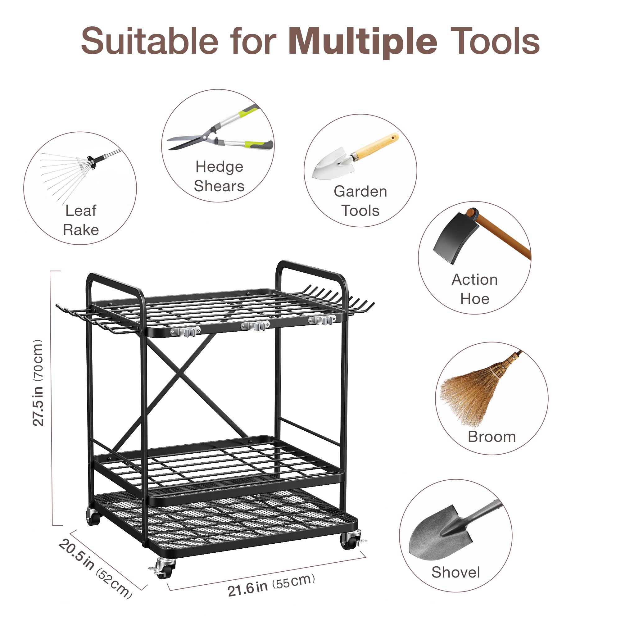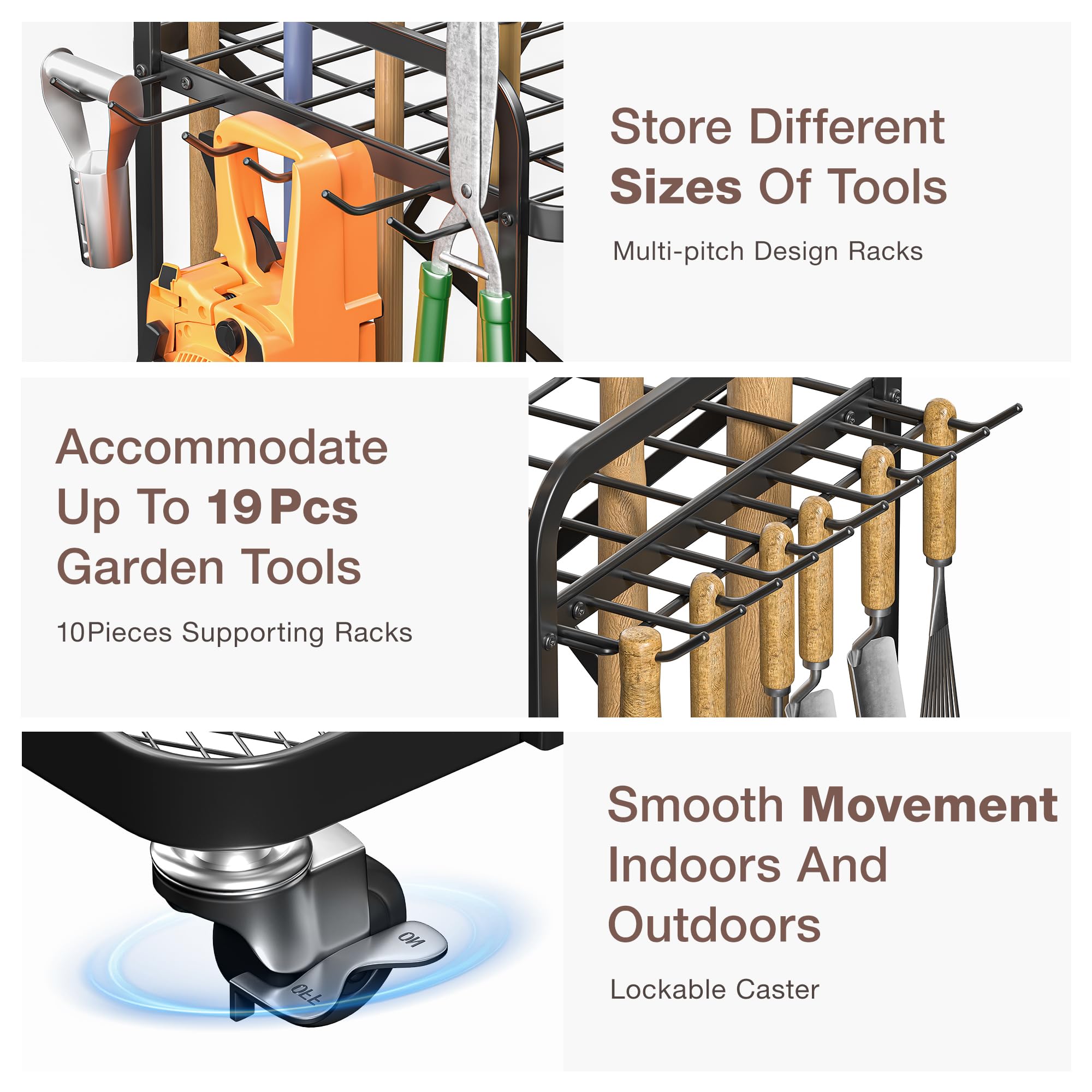 Lineware Gartenwerkzeug-Organizer für Garage, Gartenwerkzeug, Aufbewahrung mit Rädern, Gartenwerkzeugständer, Gartenwerkzeughalter, Hof-Werkzeugaufbewahrung für Outdoor-Schuppen, Garage, Garten,