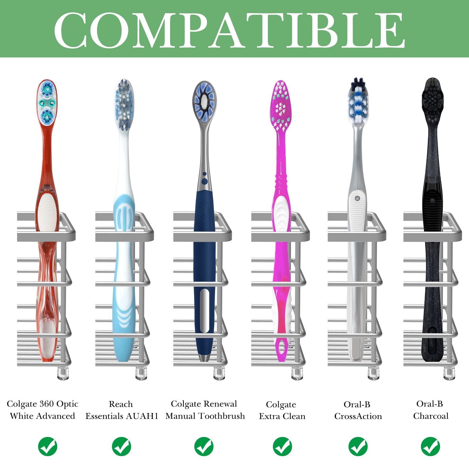 Linkidea Belüfteter Zahnbürstenhalter für Badezimmer, Zahnbürstenständer aus Edelstahl für Zahnbürste, Zahnpasta, Rasierer, Handseife, Schminktisch mit 6 Fächern (Chrom)