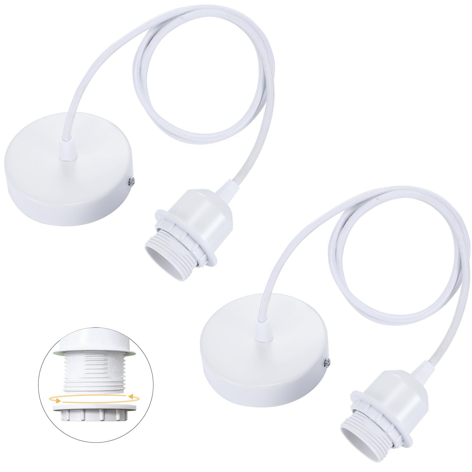 Linkind 2er Lampenfassung mit Befestigungsring, 100cm Lampenaufhängung Lampenschirm frei wählbar Schnurpendel mit E27 Fassung, Hängelampe für Restaurant, Weiss