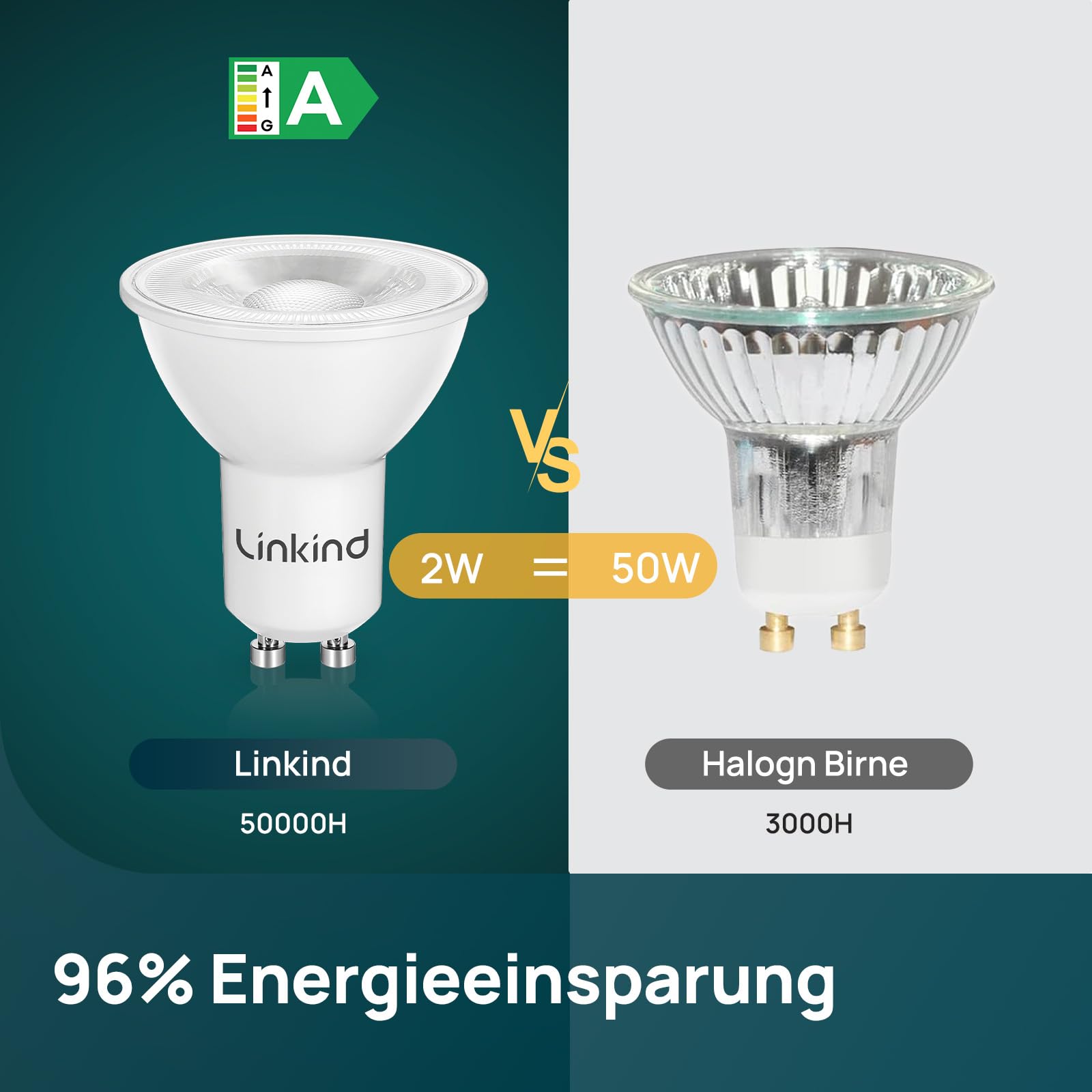 Linkind Ultraeffiziente GU10 LED Lampe, 2W ersetzt 50W, 4000K Neutralweiss mit Energieeffizienz-Label-A, Nicht Dimmbar Glühbirne 360Lm, 36° Abstrahlwinkel, Klasse-A GU10 LED Birne, 2 Stück
