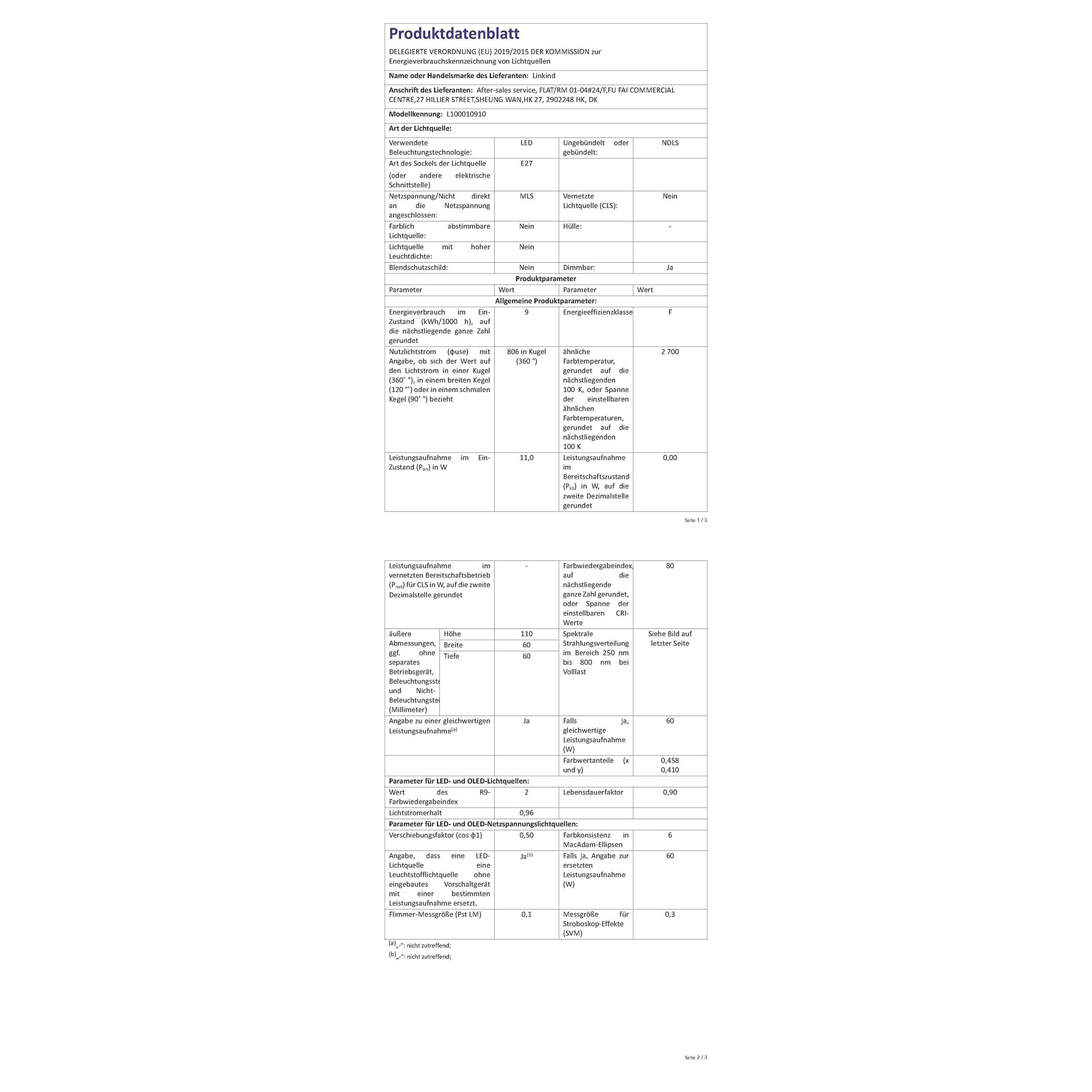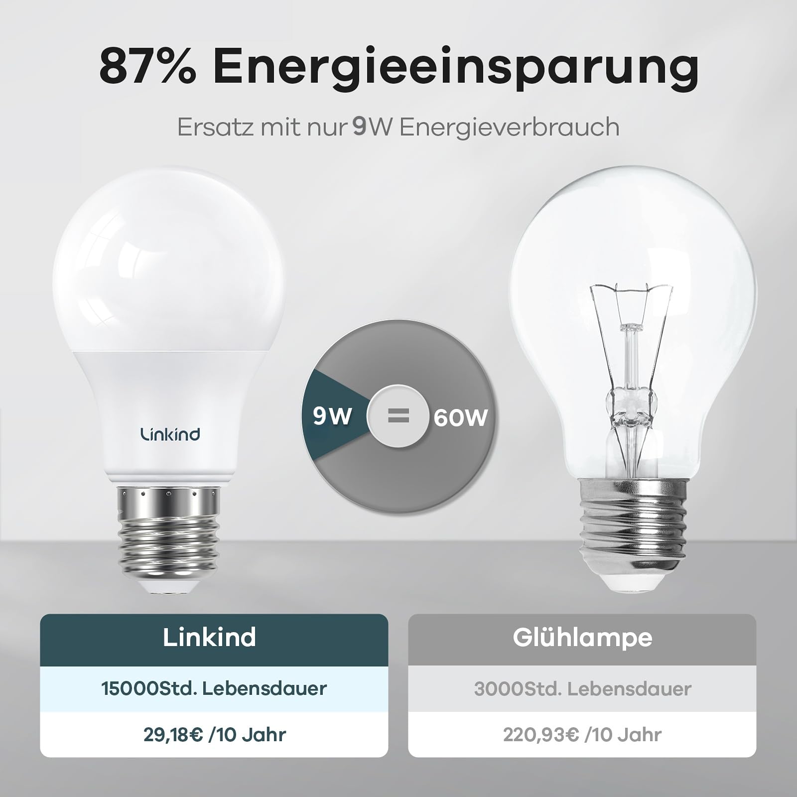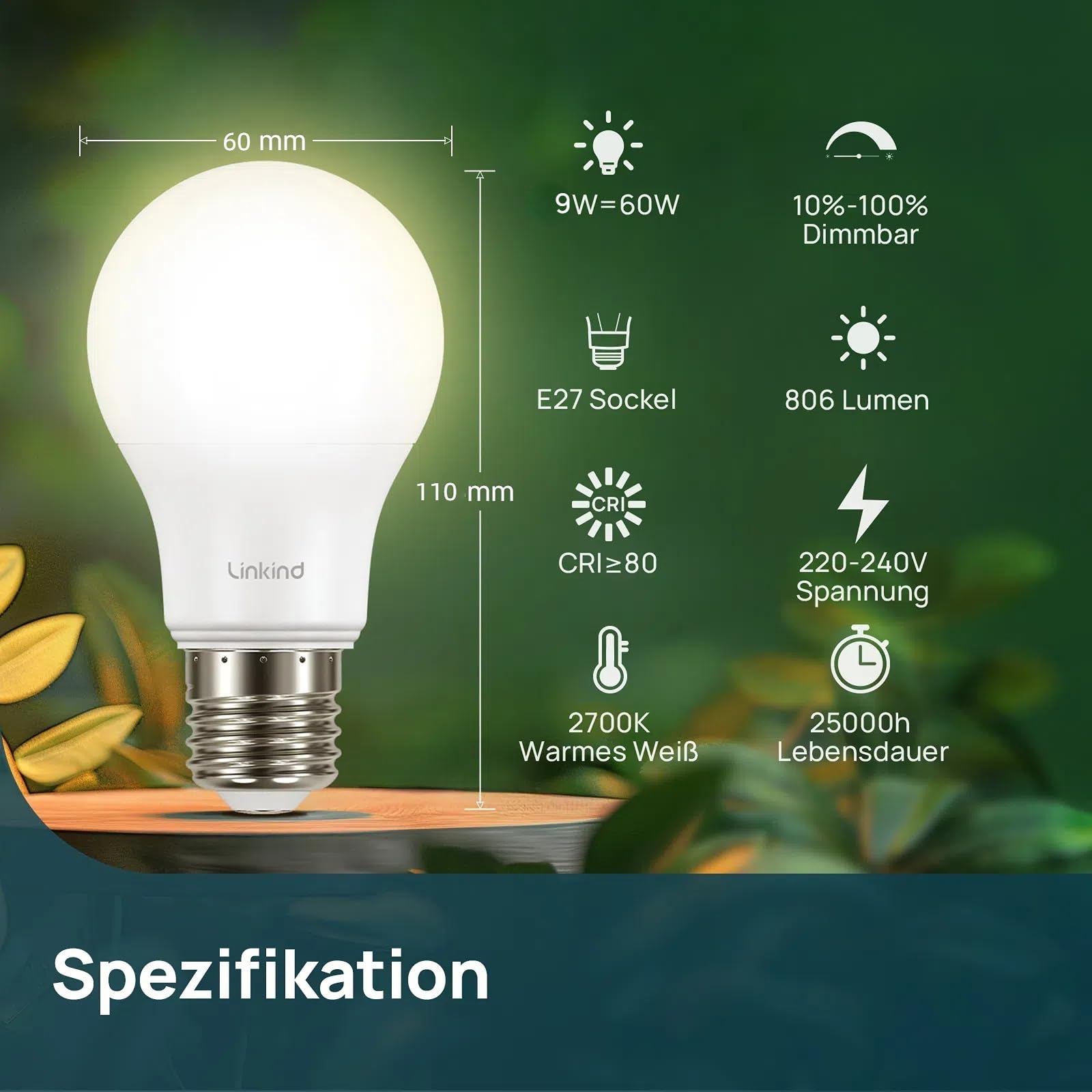 Linkind Dimmbare E27 LED Lampe 9W, ersetzt 60 Watt, A60 Edison 2700K Warmweiss Led Lampen E27, 806Lm mit 220° Abstrahlwinkel, ERP, 6 Stück