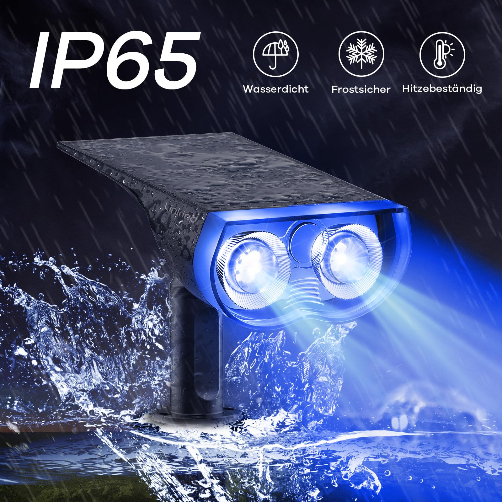 Linkind Bunt Solarlampen für Aussen, RGB+Weiss Solar Strahler Garten mit 10 Lichtmodi, Solar Aussenleuchte 2 in 1 Montage, Dusk to Dawn IP65 Solarleuchte StarRay für Bäume, Vorgarten, Hof, 2 Stück
