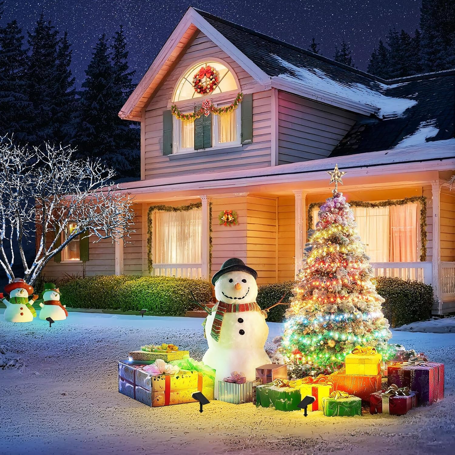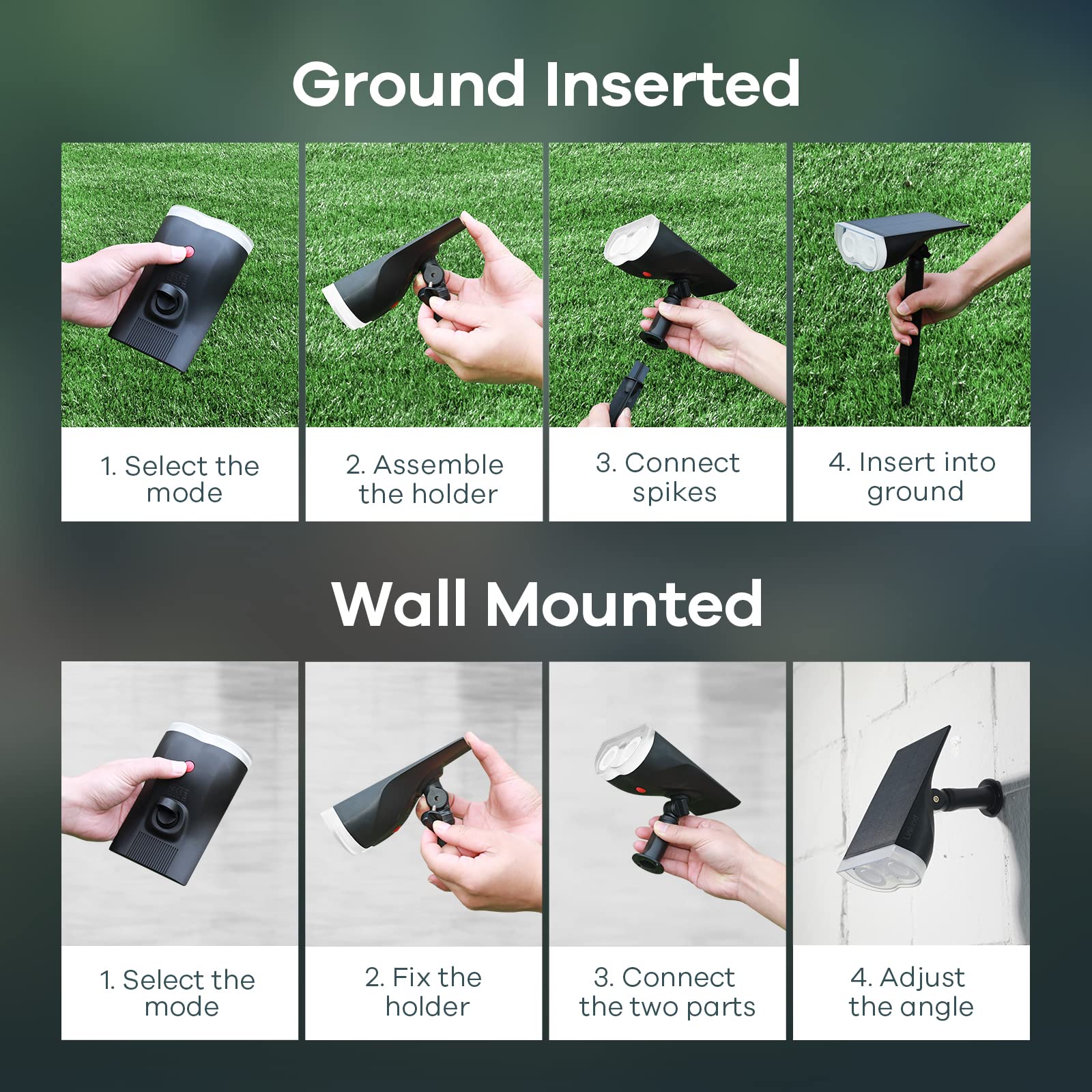 Linkind StarRay Solar-Gartenleuchten für den Aussenbereich, 16 LEDs, Farbwechsel, RGB-Solarbetrieben, IP67 wasserdichte Wandleuchte, Sicherheitslicht für Weg, Terrasse, Weihnachtsdekoration, 4 Stück