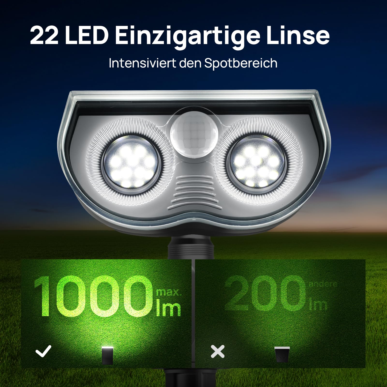 Linkind StarRay Solar Gartenleuchte mit Bewegungsmelder, 6500K Tageslichtweiss Solarlampen für aussen, IP67 Aussen-Wandleuchte mit Dauerlicht, 1000lm Hell Solarstrahler für Garten, Garage, 2 Stk.