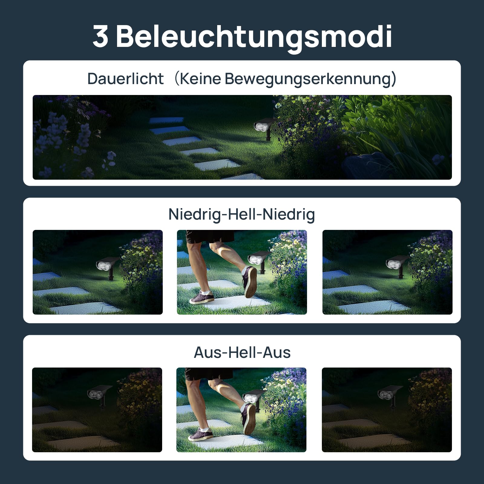 Linkind solarlampen Solar Strahler mit Bewegungsmelder 6500K Kaltweiss, 3 Modi (inkl. Dauerlicht), 1000Lm Helle Solar Aussenlampen von 2 Montage, IP67 Gartenstrahler für Weg, 4 Stück