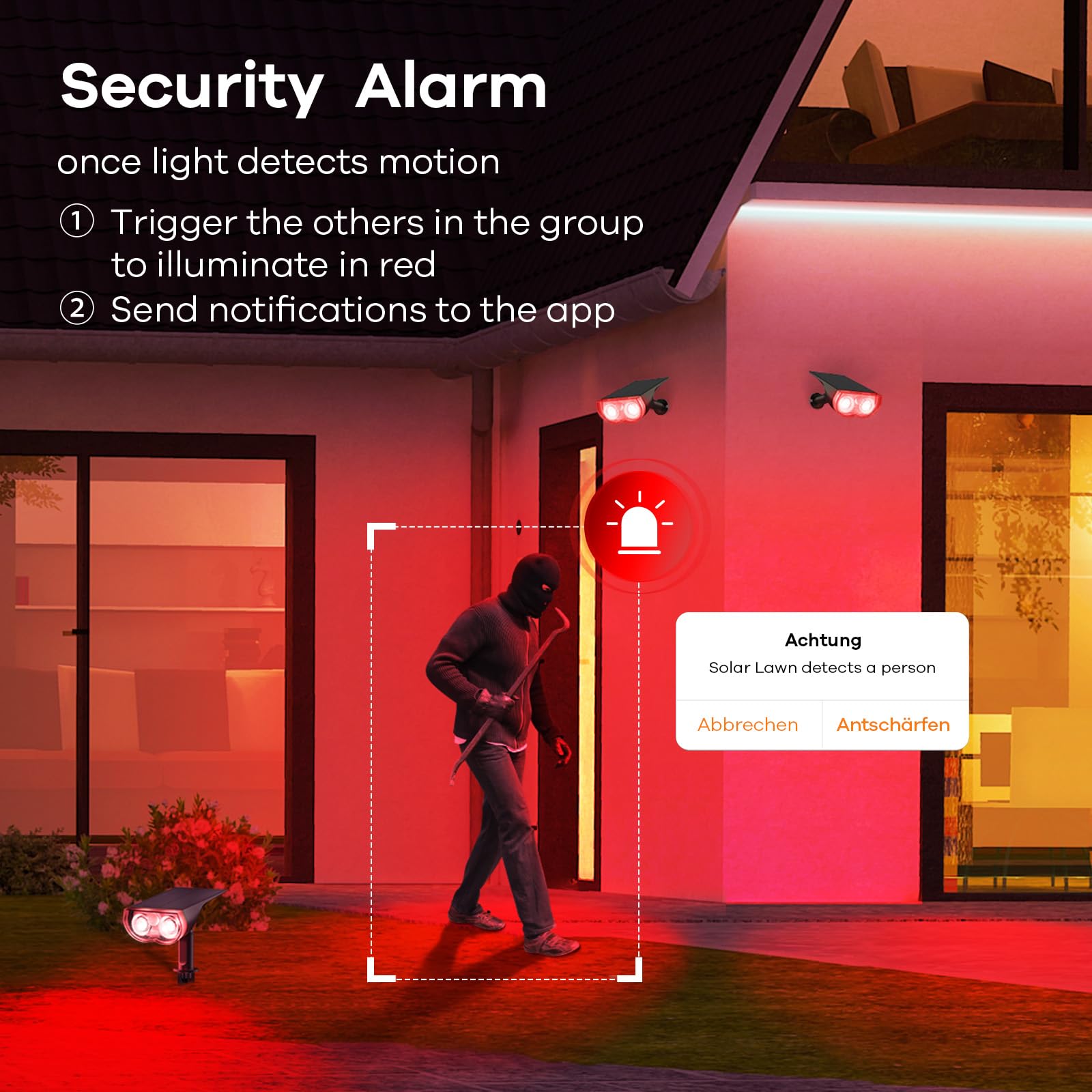 Linkind Intelligenter Bunt Solarstrahler für Aussen Garten, 16Mio. Farbe RGBW Gartenleuchte mit Bewegungsmelder, Gruppensteuerbar, Musiksync, Rotlichtalarm, IP65 RGBTW Smart Solar Baumstrahler, 4 Stück