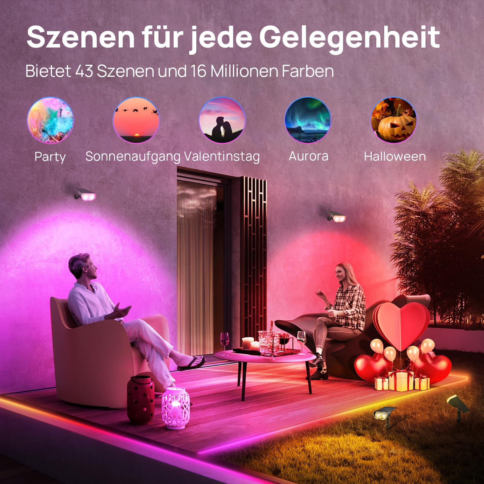 Linkind Intelligenter Bunt Solarstrahler für Aussen Garten, 16Mio. Farbe RGB Gartenleuchte mit Warm-& Kaltweiss, Gruppensteuerbar, Musiksync, Rotlichtalarm, IP65 RGBTW Smart Solar Baumstrahler, 4 Stück
